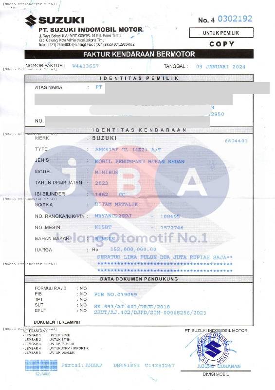 A.N PT // NAMA PADA STNK DISINGKAT // TYPE UNIT PADA DOKUMEN ARK415F GL //
