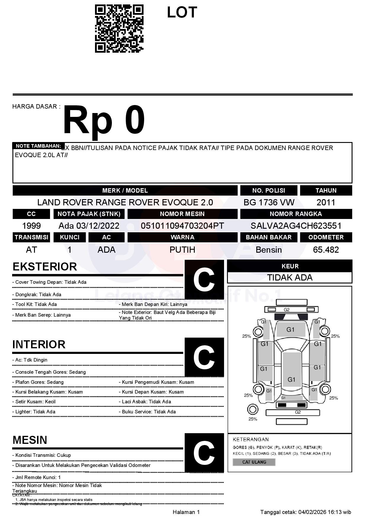 EX BBN//TULISAN PADA NOTICE PAJAK TIDAK RATA// TIPE PADA DOKUMEN RANGE ROVER EVOQUE 2.0L AT//