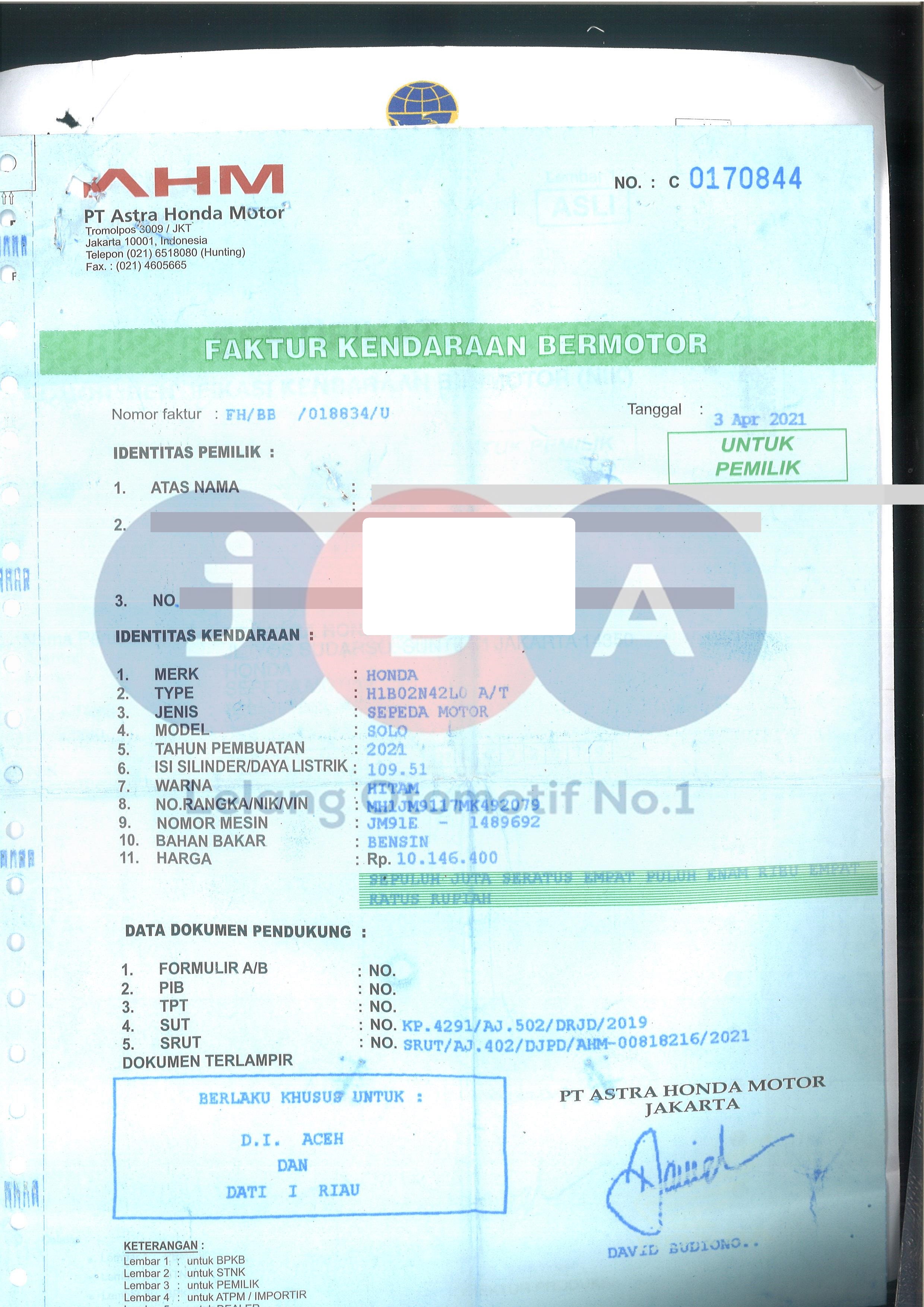 JAKARTA RAYA MOTOR - JL.Husein Sastra Negara Komplek Pergudangan Nusa Indah - Jurumudi.