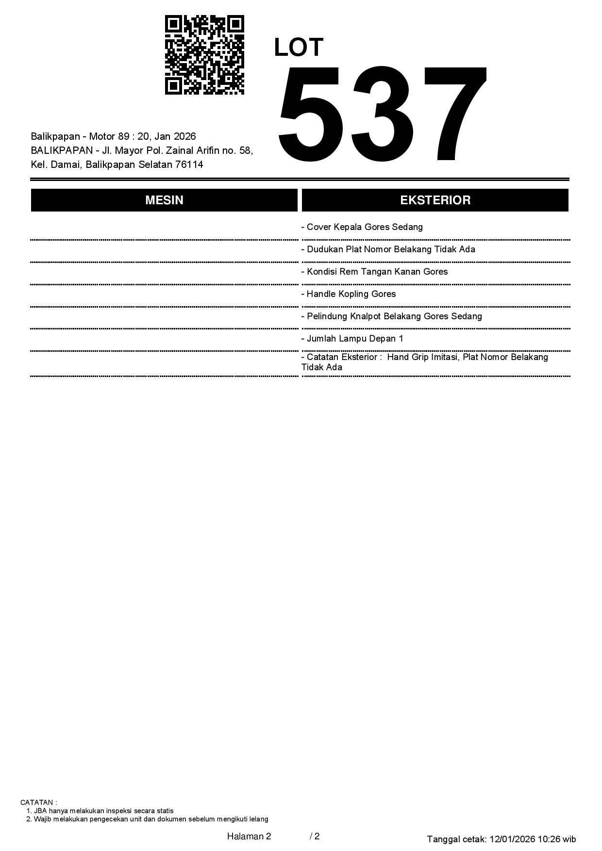 Auction Date: 20/01/2026 11:00 | WITA
