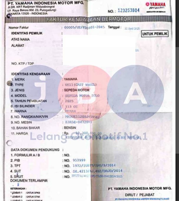 UNIT TIDAK DI CHECKLIST LANGSUNG // WAJIB TTD SURAT PERNYATAAN BERMATERAI DI JBA // WAJIB CEK UNIT DAN DOKUMEN // PEMENANG WAJIB KONFIRMASI KE JBA SETELAH PELUNASAN // PENGAMBILAN UNIT H+3 SETELAH PELUNASAN // STNK TA INDIKASI FASILITAS FTZ WAJIB CEK SAMSAT TERKAIT // NOPOL FISIK TA //