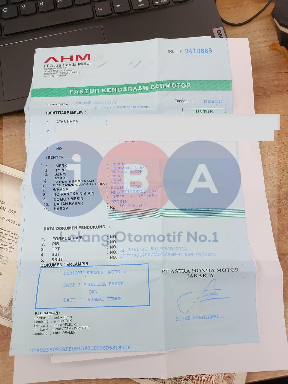 WARNA UNIT DI STNK PUTIH HITAM // NOPOL FISIK TA