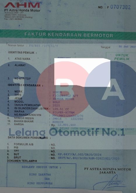 TERDAPAT BEDA PENULISAN 1 DIGIT NOKA BPKB DENGAN FISIK // WARNA UNIT PADA DOKUMEN SILVER HITAM //