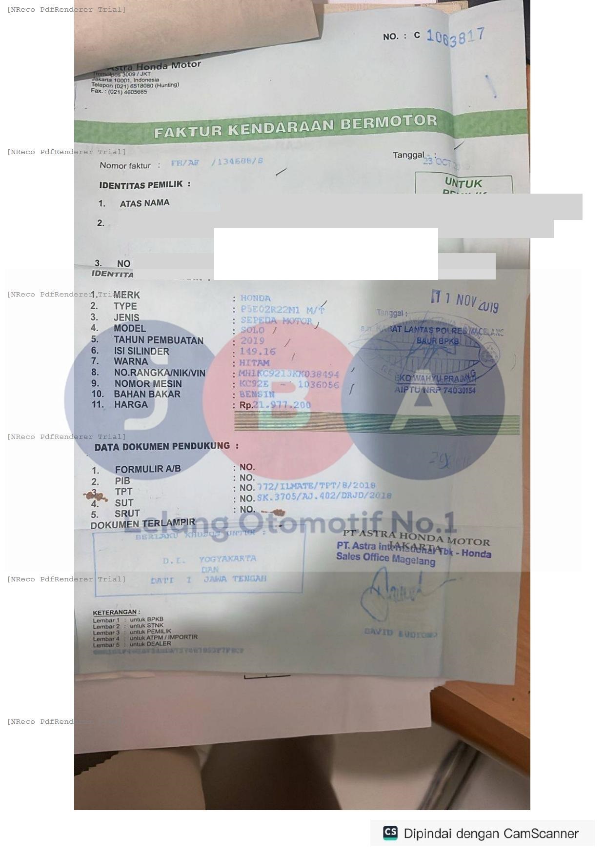 PENULISAN NOSIN PADA BPKB KURANG JELAS BEBERAPA DIGIT //