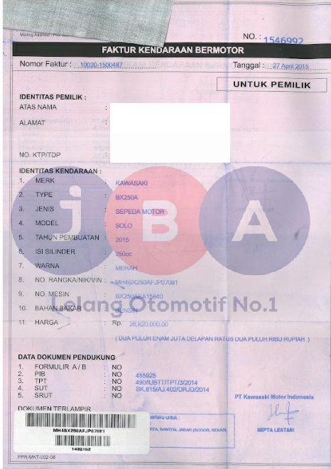 NOSIN TIDAK TERJANGKAU // PEMENANG LELANG WAJIB MENANDATANGANI SURAT PERNYATAAN BERMATERAI DI JBA