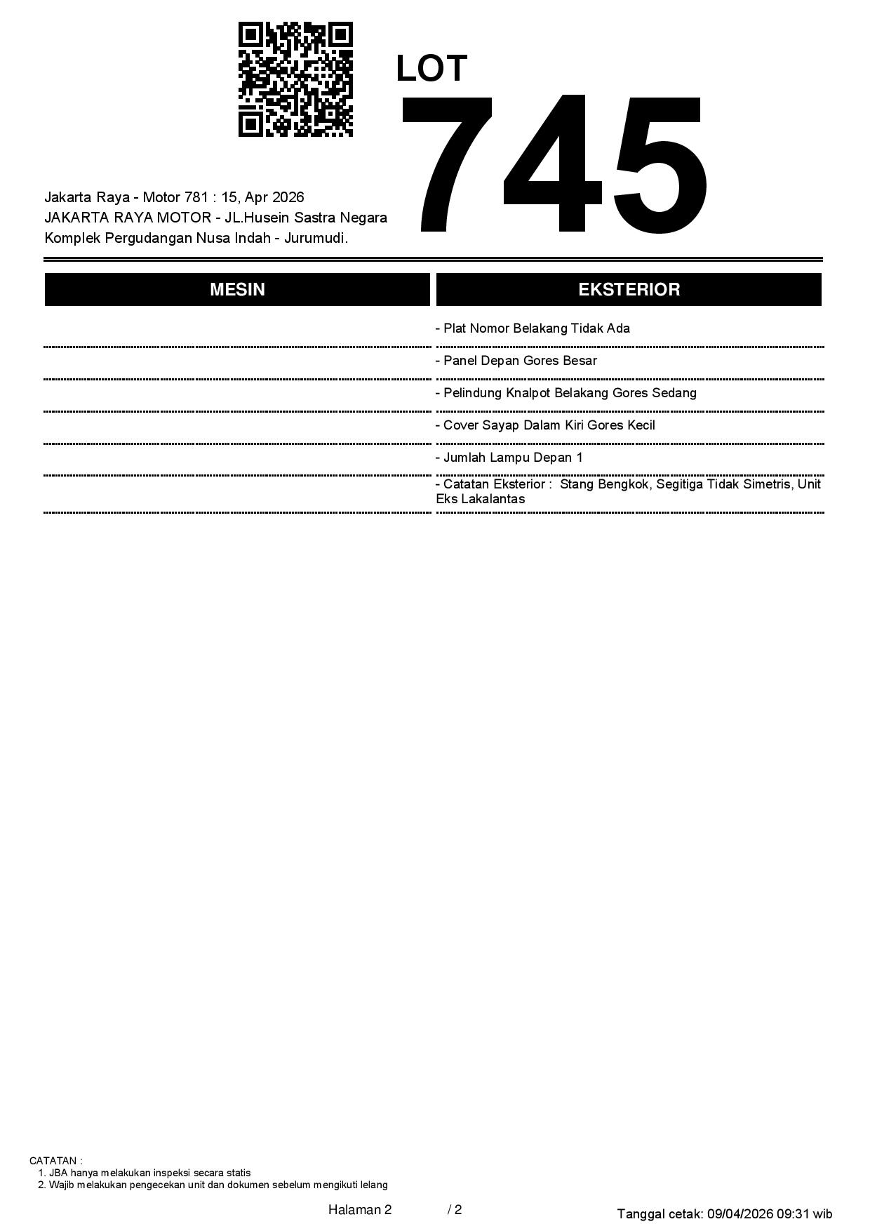 Auction Date: 15/04/2026 13:00 | WIB