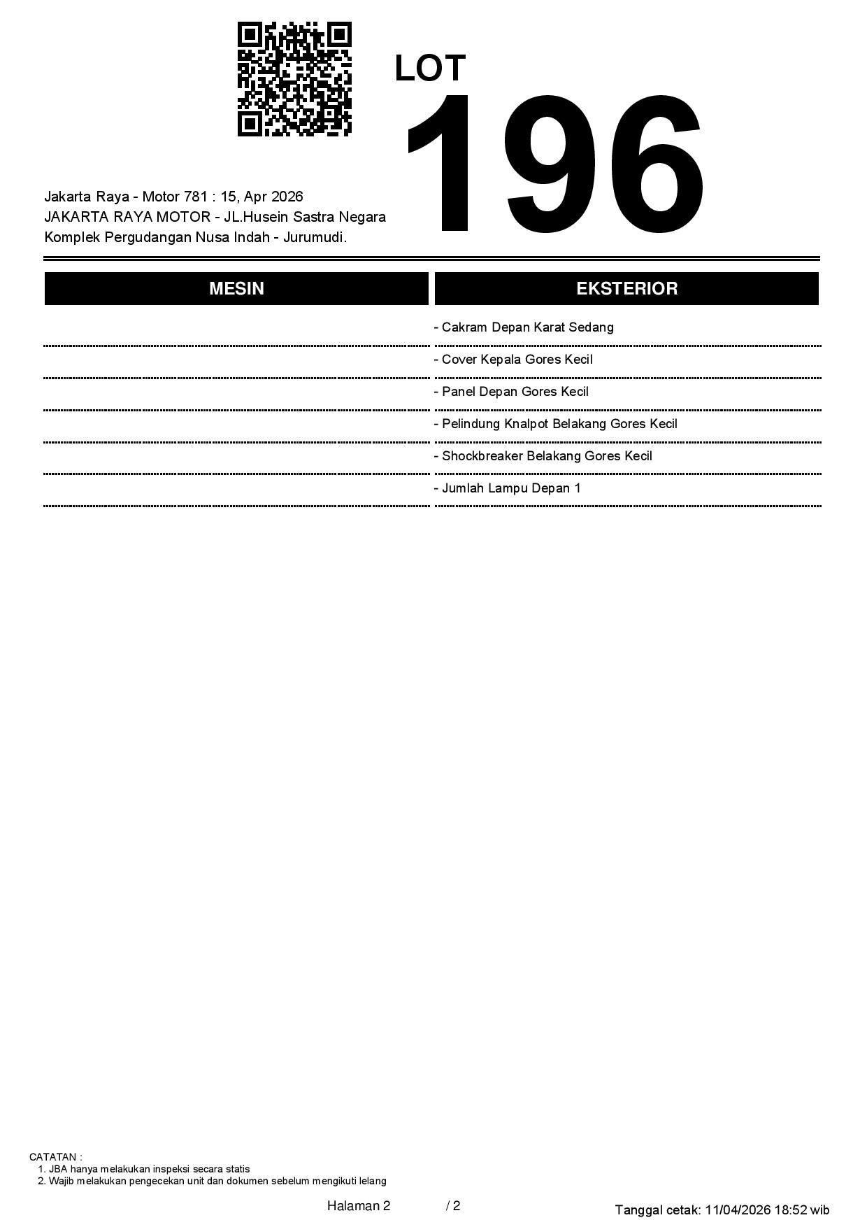 Auction Date: 15/04/2026 13:00 | WIB