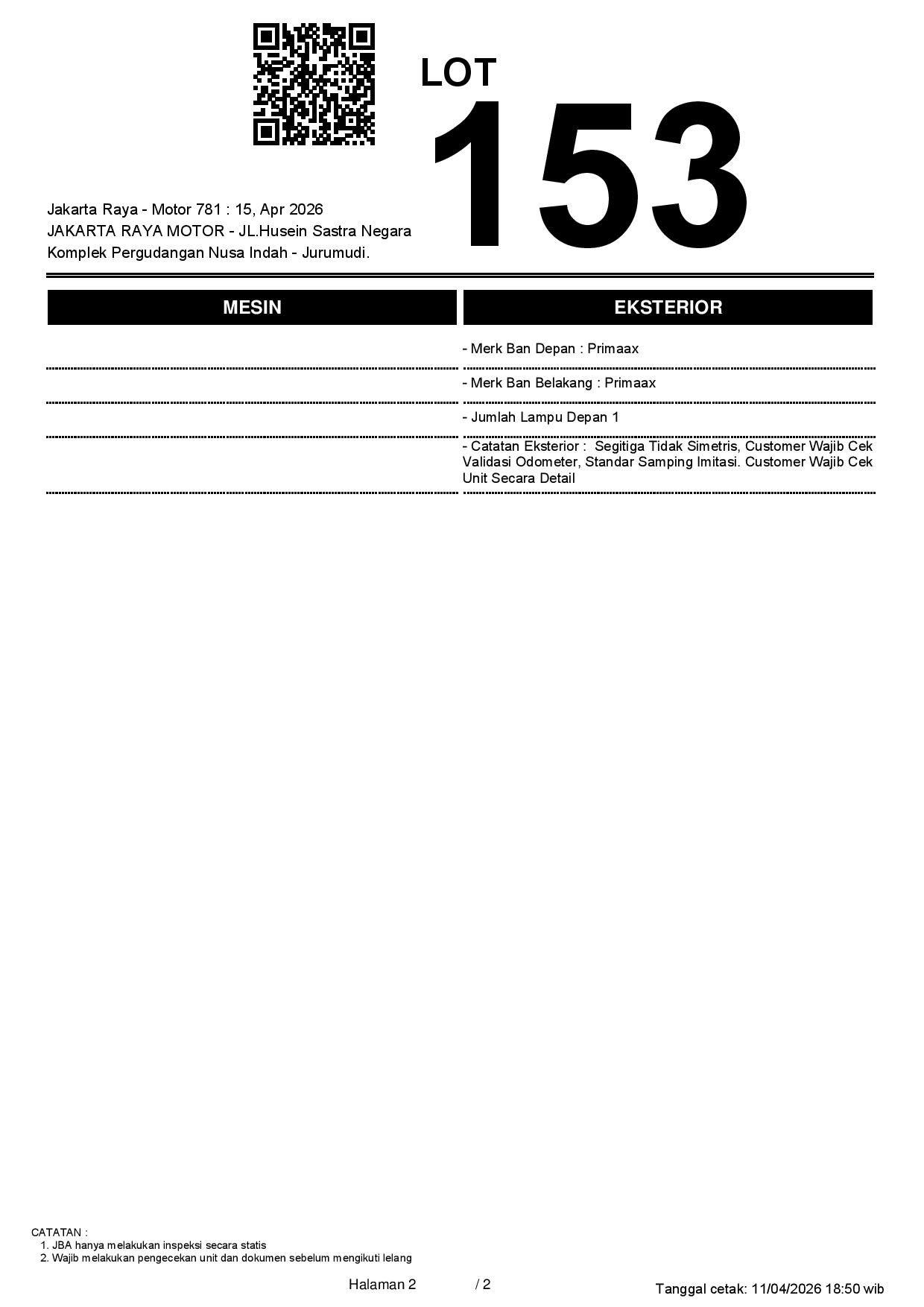 Auction Date: 15/04/2026 13:00 | WIB