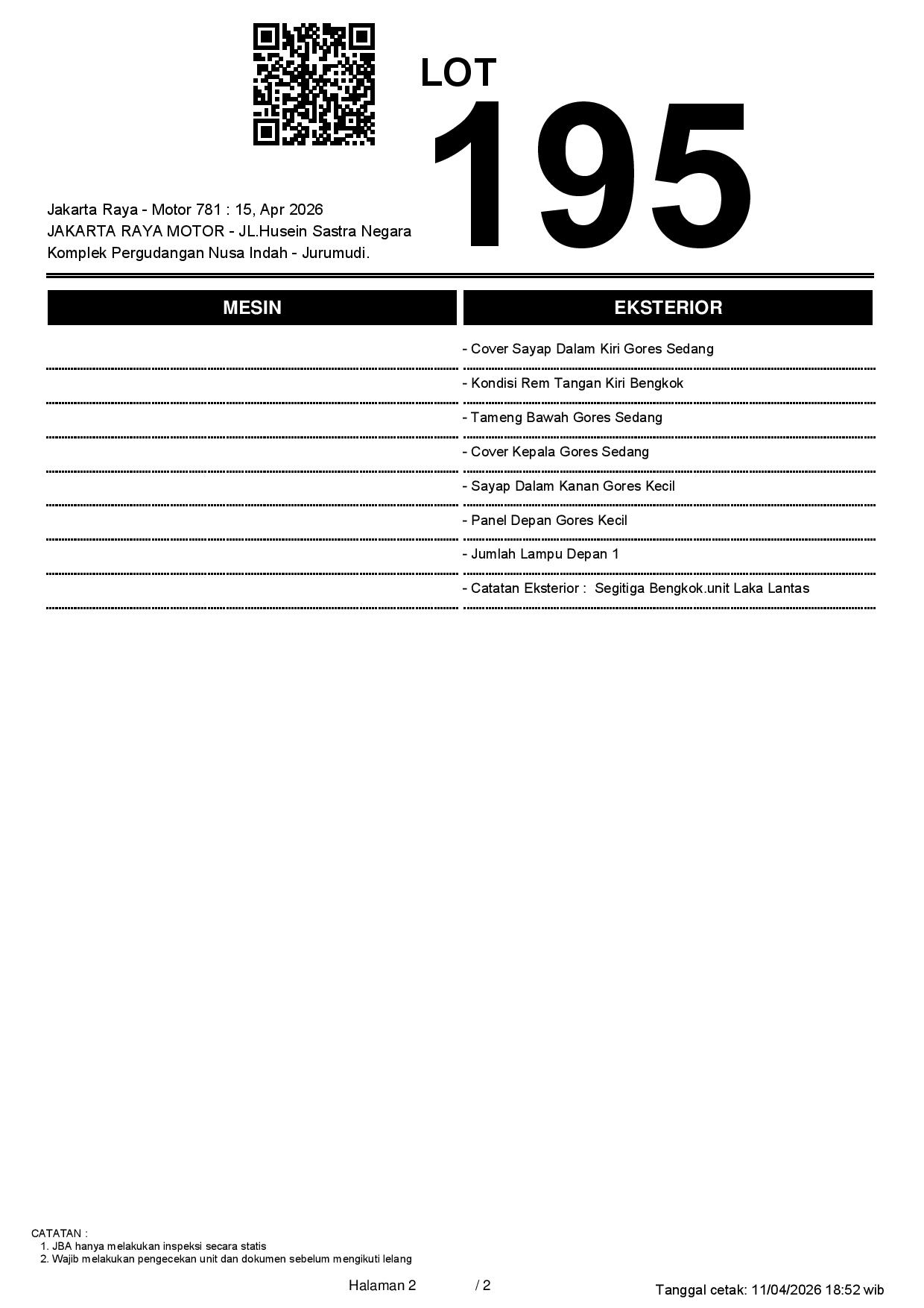 Auction Date: 15/04/2026 13:00 | WIB