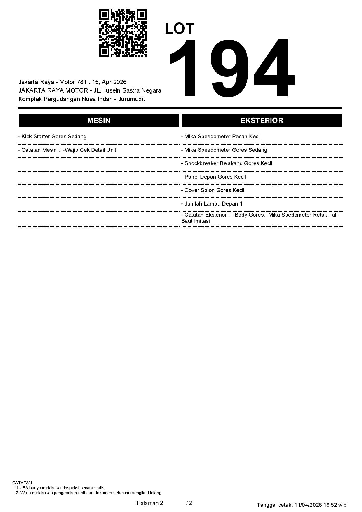 Auction Date: 15/04/2026 13:00 | WIB