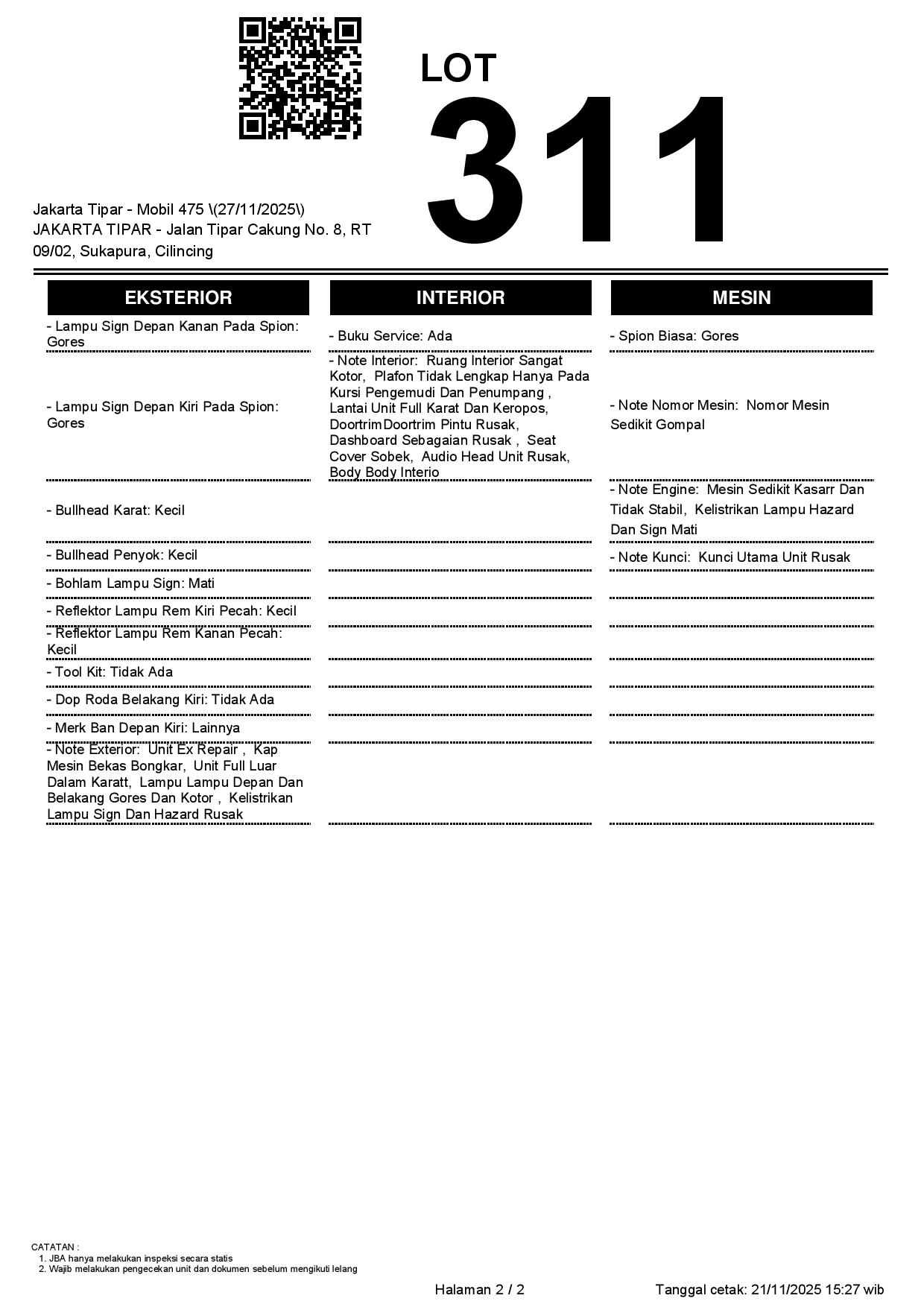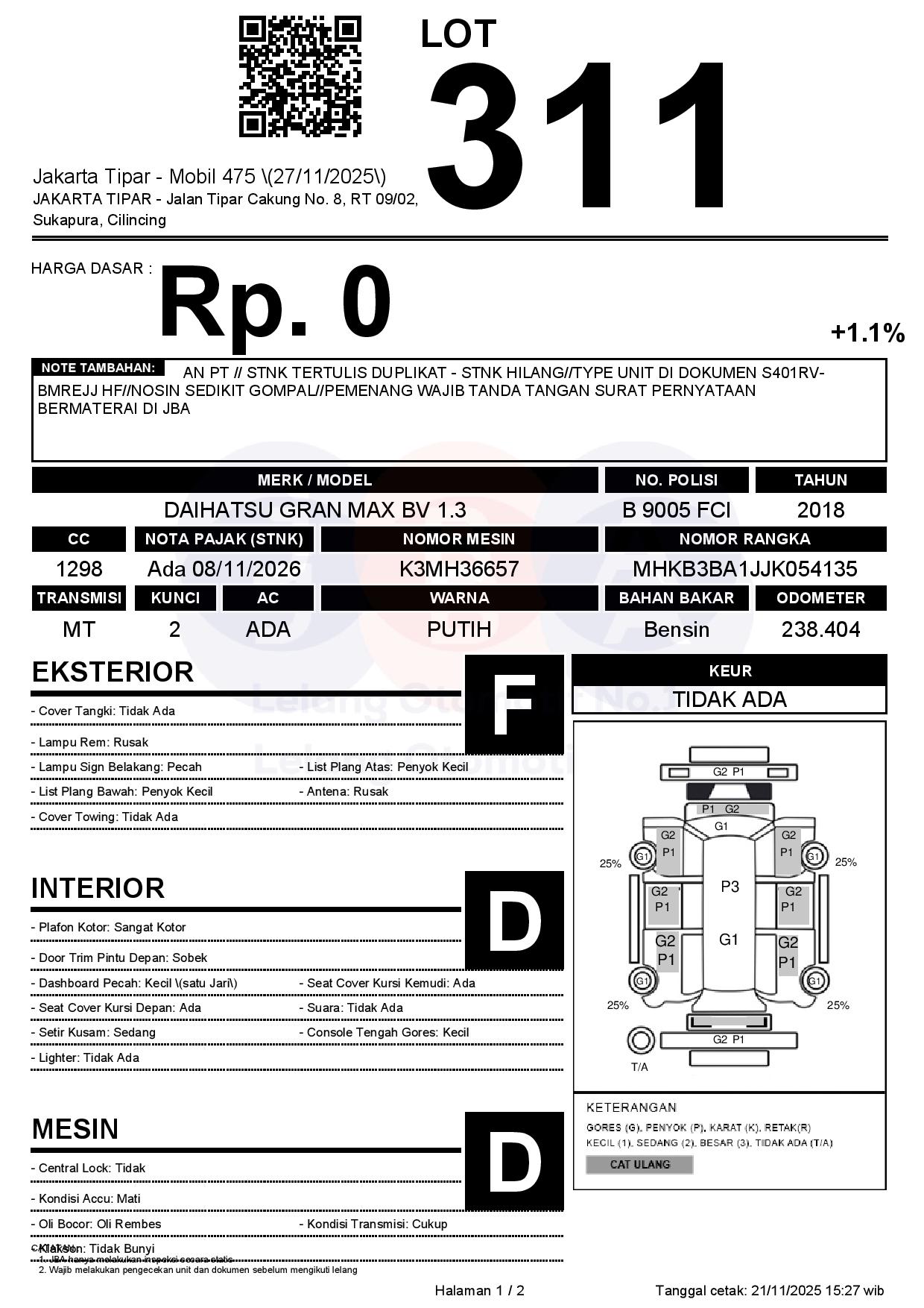 Tanggal Lelang: 27/11/2025 | 13:00 WIB