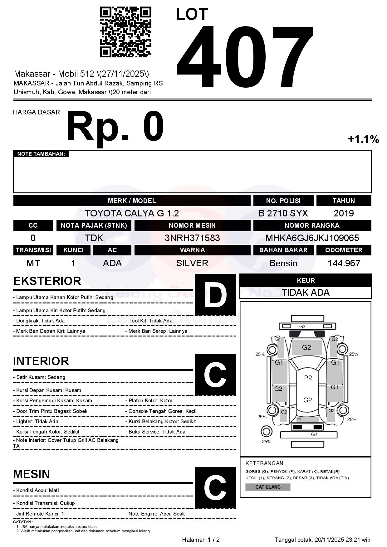 Tanggal Lelang: 27/11/2025 | 13:00 WITA