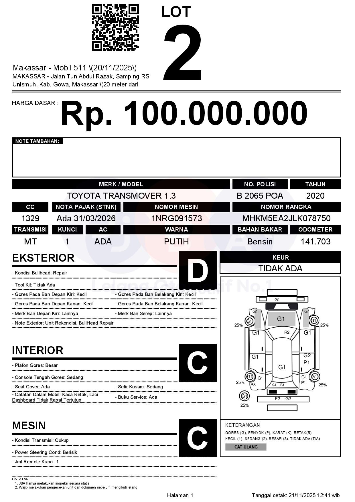 Tanggal Lelang: 27/11/2025 | 13:00 WITA