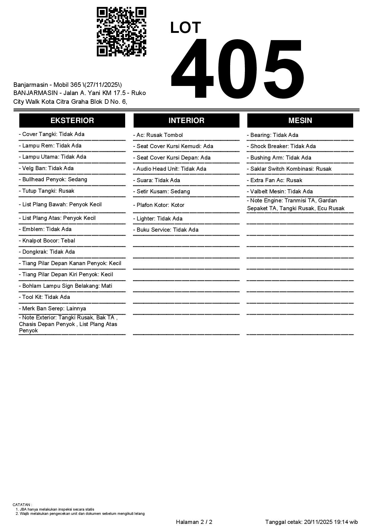 Tanggal Lelang: 27/11/2025 | 13:00 WIB
