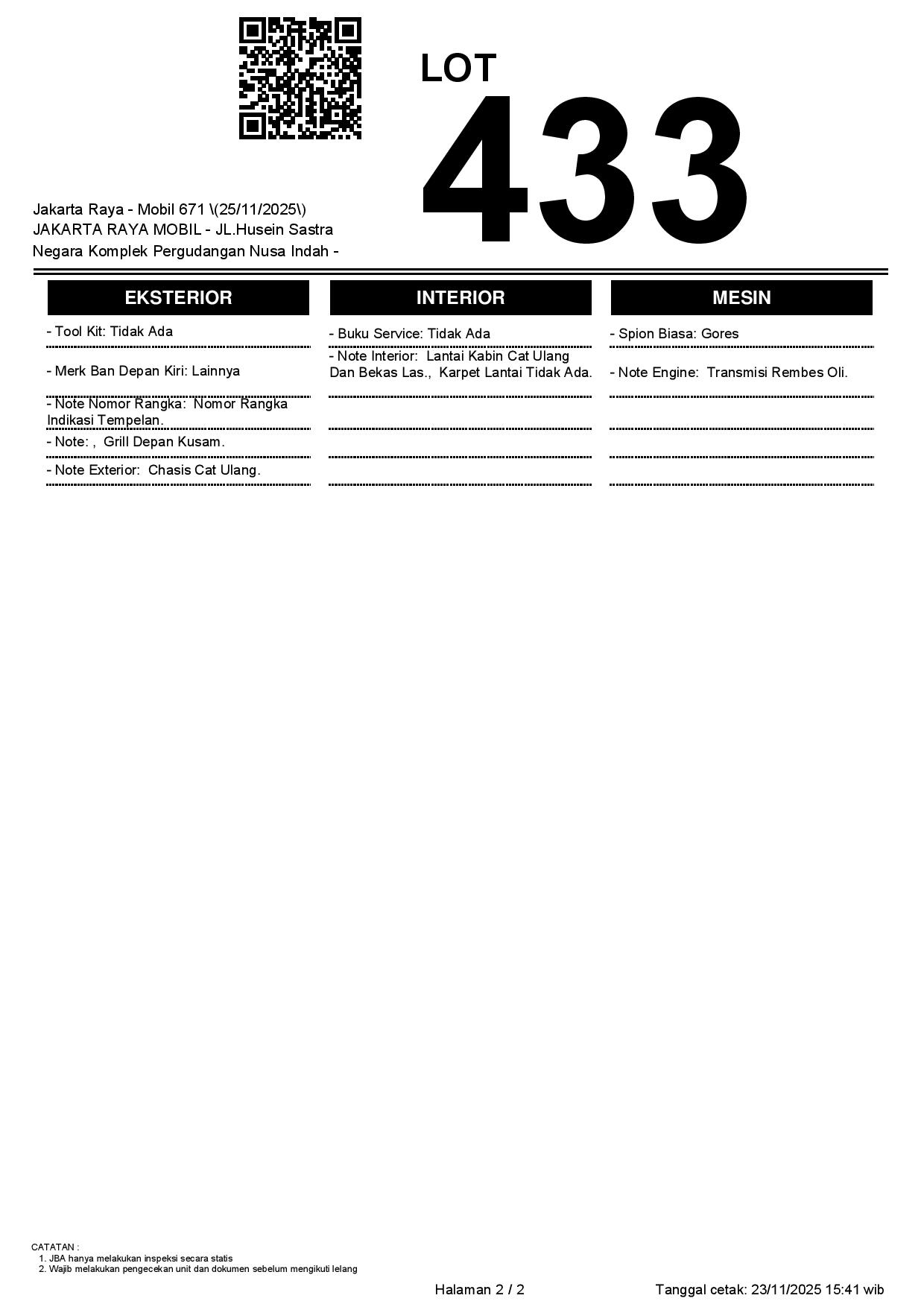 Tanggal Lelang: 25/11/2025 | 13:00 WIB