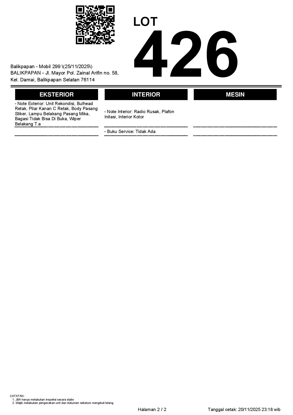 Tanggal Lelang: 25/11/2025 | 13:00 WITA