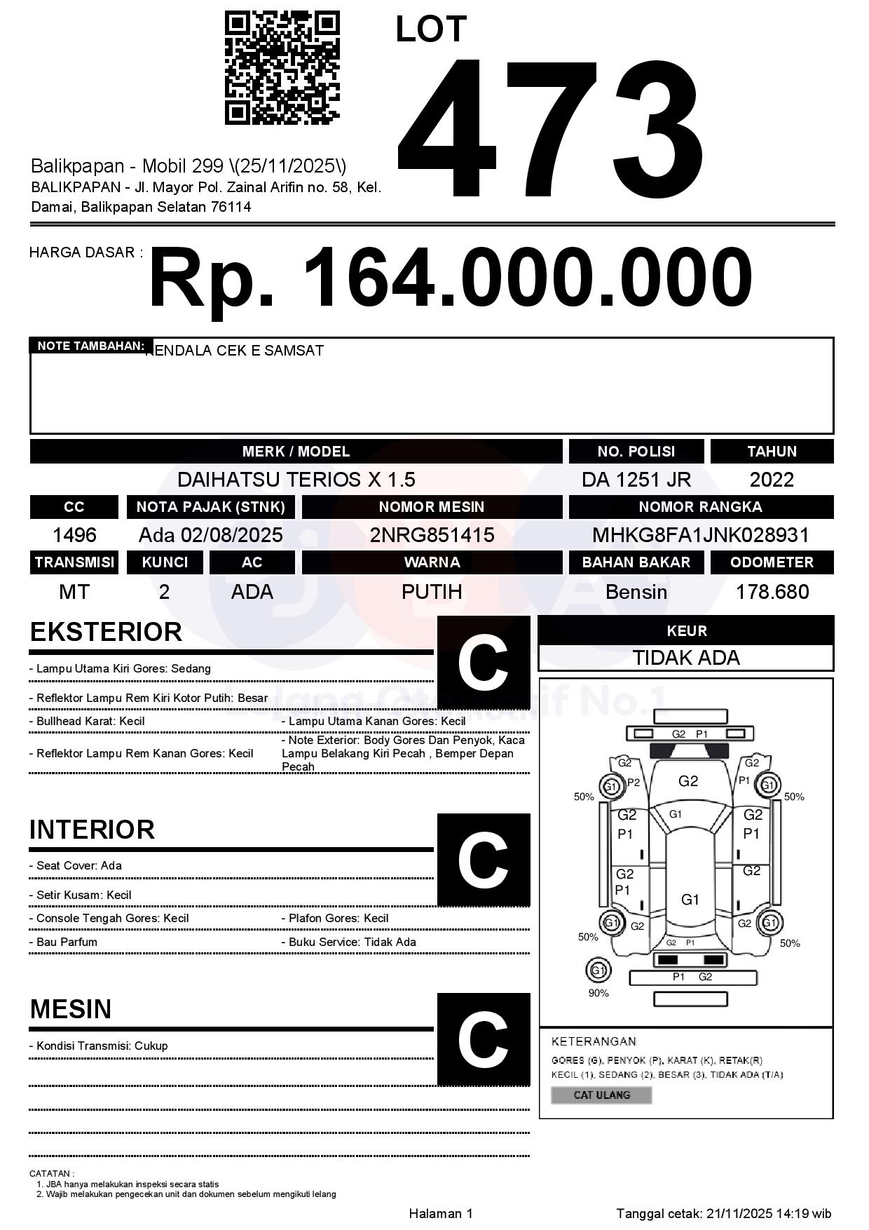 Tanggal Lelang: 25/11/2025 | 13:00 WITA
