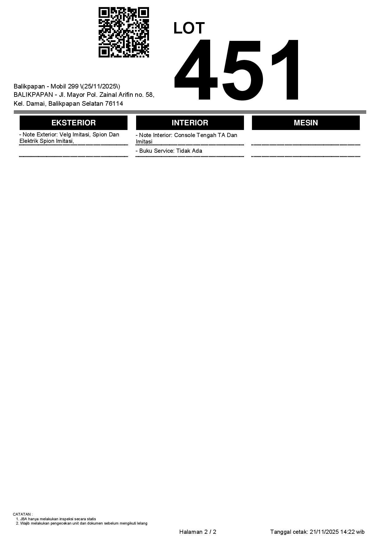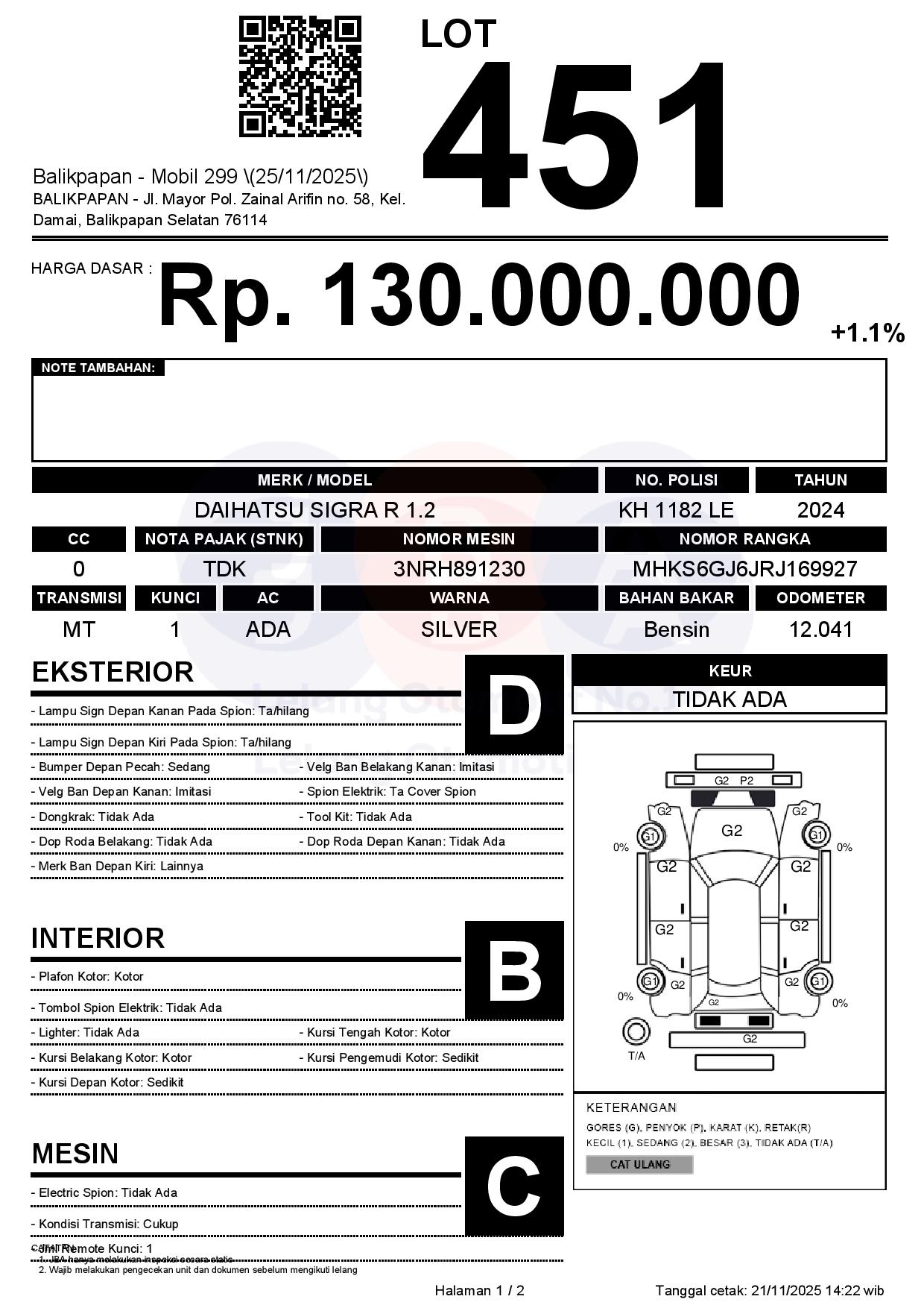 Tanggal Lelang: 25/11/2025 | 13:00 WITA