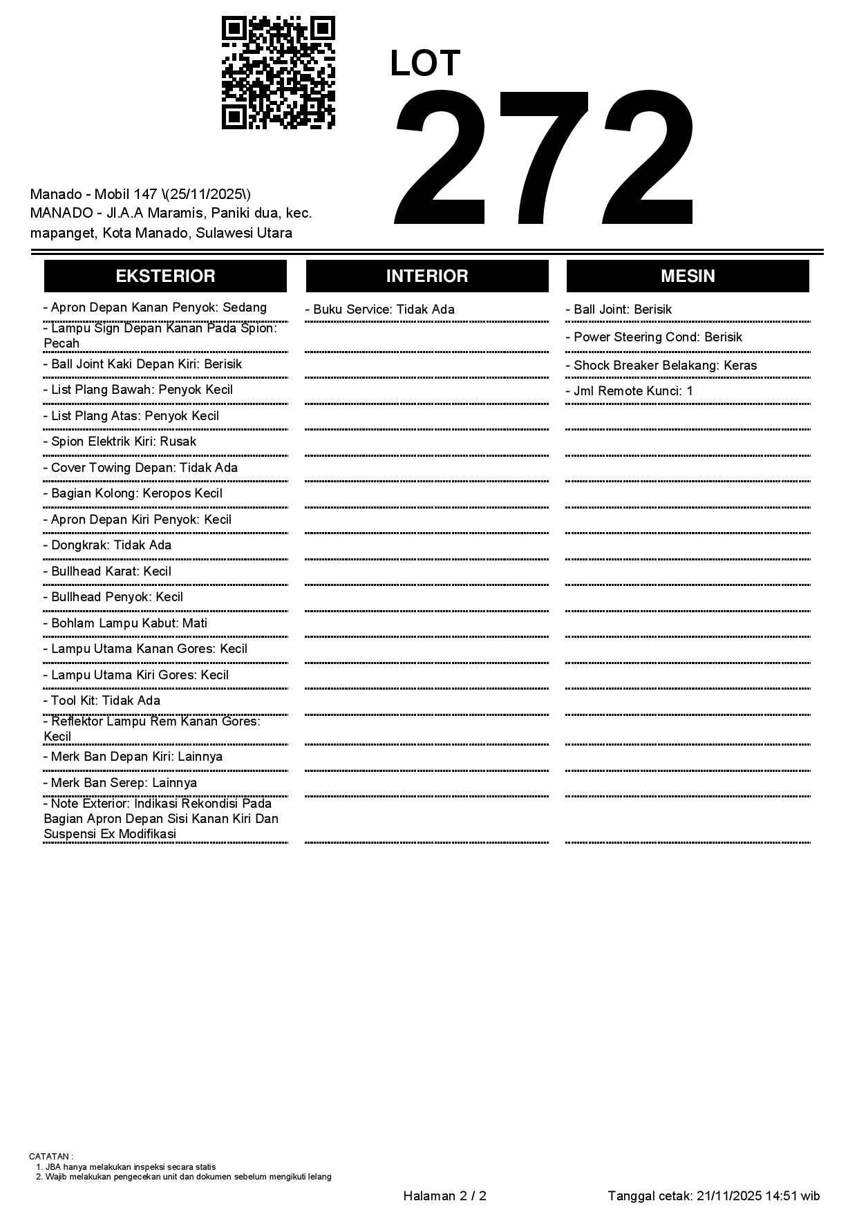 Tanggal Lelang: 25/11/2025 | 13:00 WITA