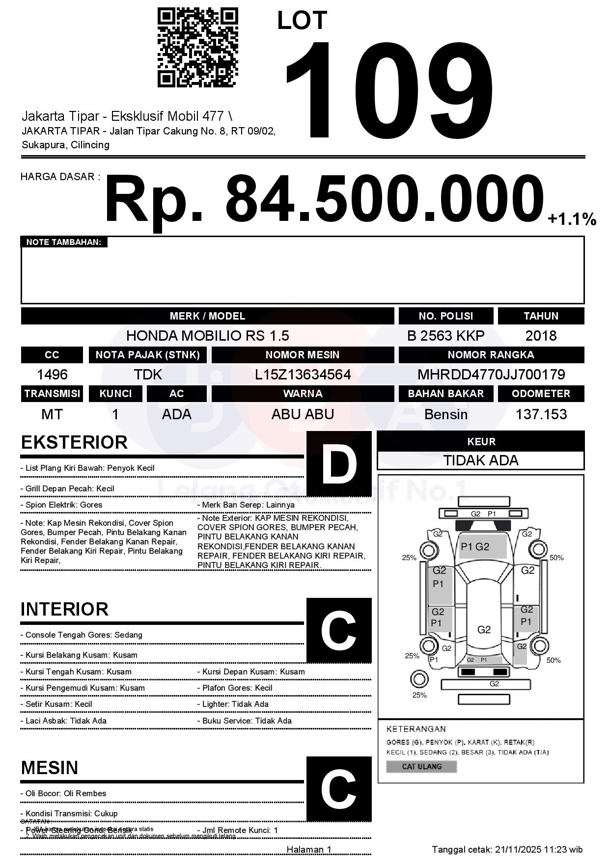 Tanggal Lelang: 24/11/2025 | 13:00 WIB