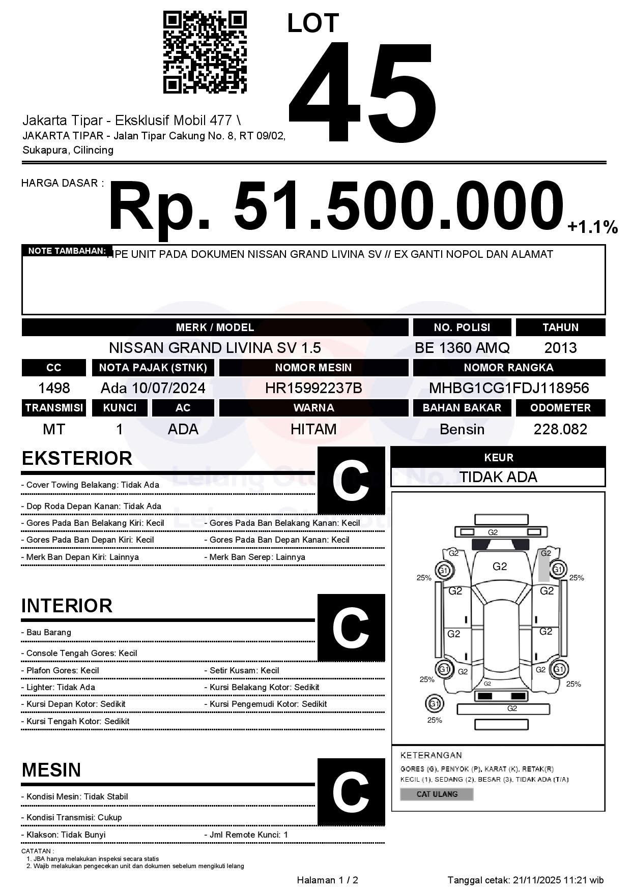 Tanggal Lelang: 24/11/2025 | 13:00 WIB