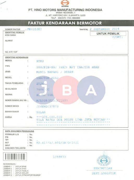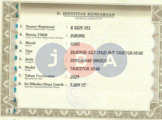 AN PT // TIPE DI DOC SG8JF2B-XGJ (4X2) M/T TRACTOR HEAD//AN PT// TNKB KUNING //