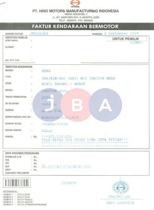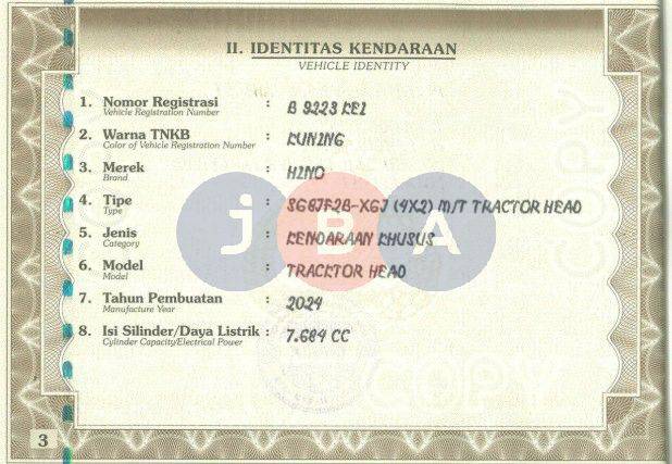AN PT//TNKB BAGIAN BELAKANG MOBIL TA// TNKB KUNING // WAJIB CEK KEABSAHAN UNIT (CEK SAMSAT/CEK BLOKIR) // WAJIB CEK UNIT & DOKUMEN SECARA LANGSUNG // TYPE UNIT DI DOKUMEN SG8JF2B-XGJ (4X2) M/T TRACTOR HEAD // MODEL DI DOKUMEN TRACTOR HEAD
