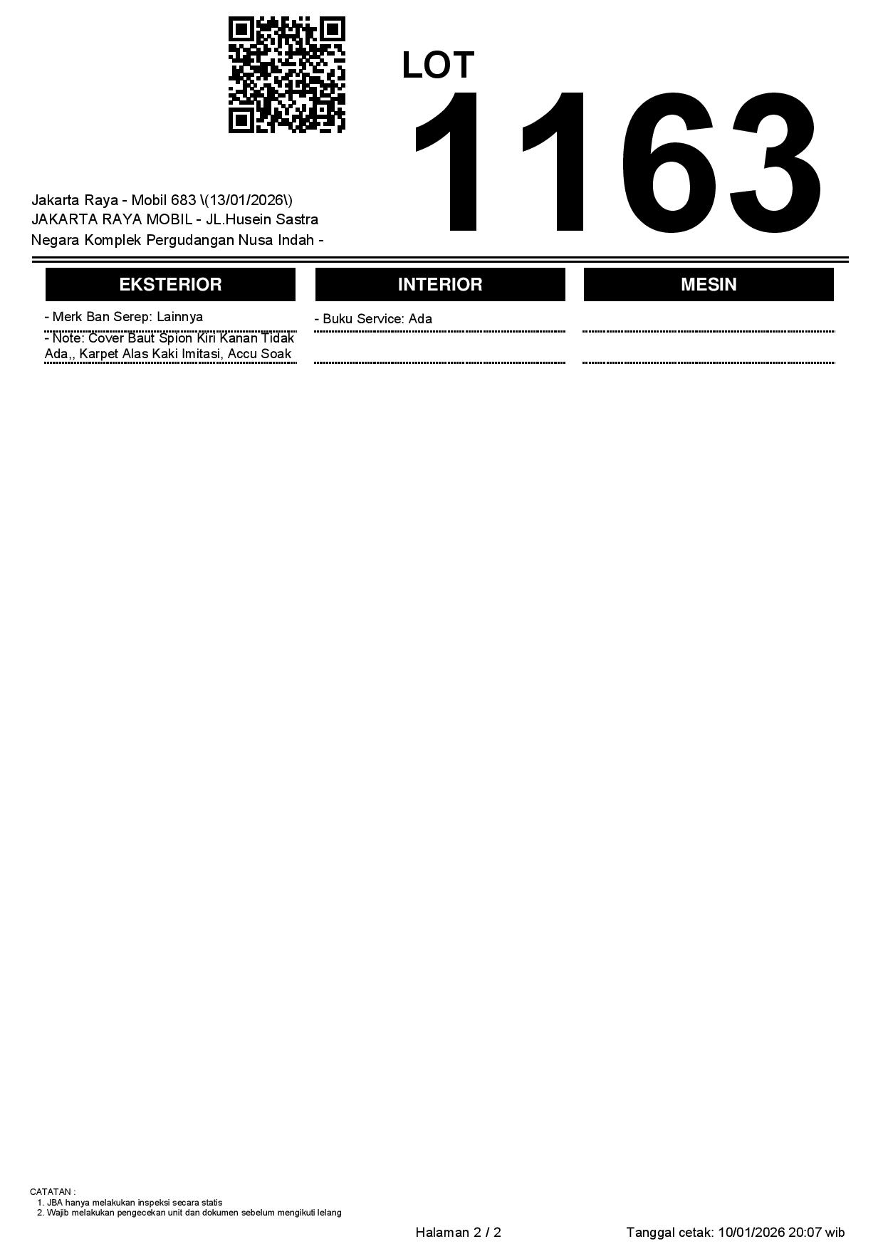 1. Peserta lelang wajib cek unit & dokumen