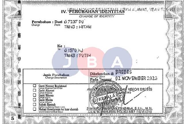 EX GANTI NOPOL//WARNA UNIT DI DOKUMEN PUTIH MUTIARA