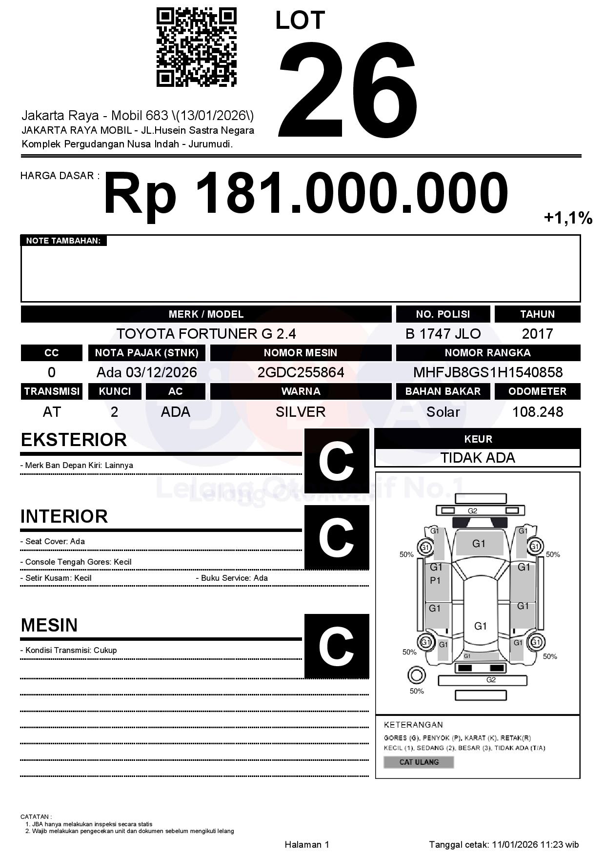Tanggal Lelang: 13/01/2026 | 13:00 WIB