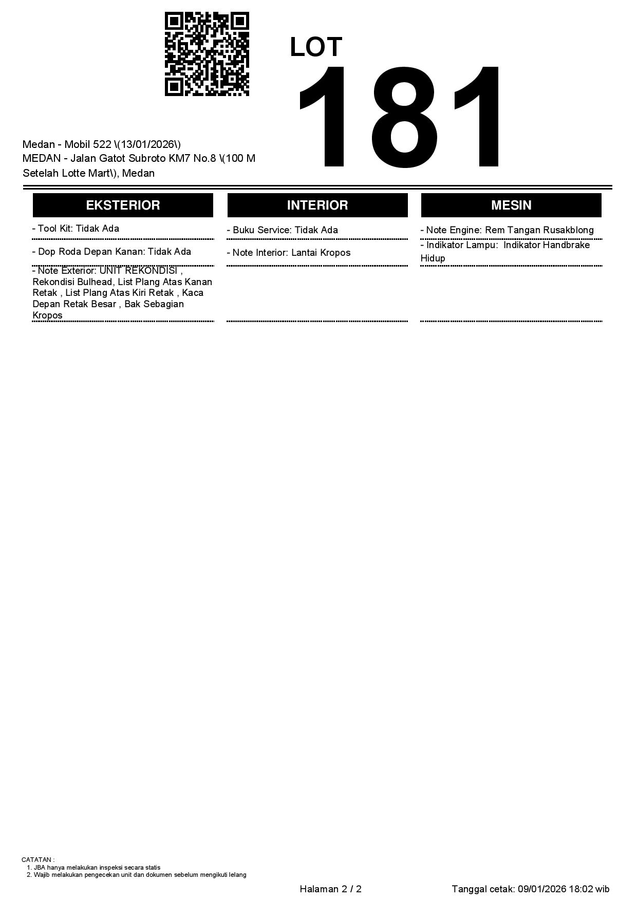 2. Peserta lelang wajib cek unit & dokumen