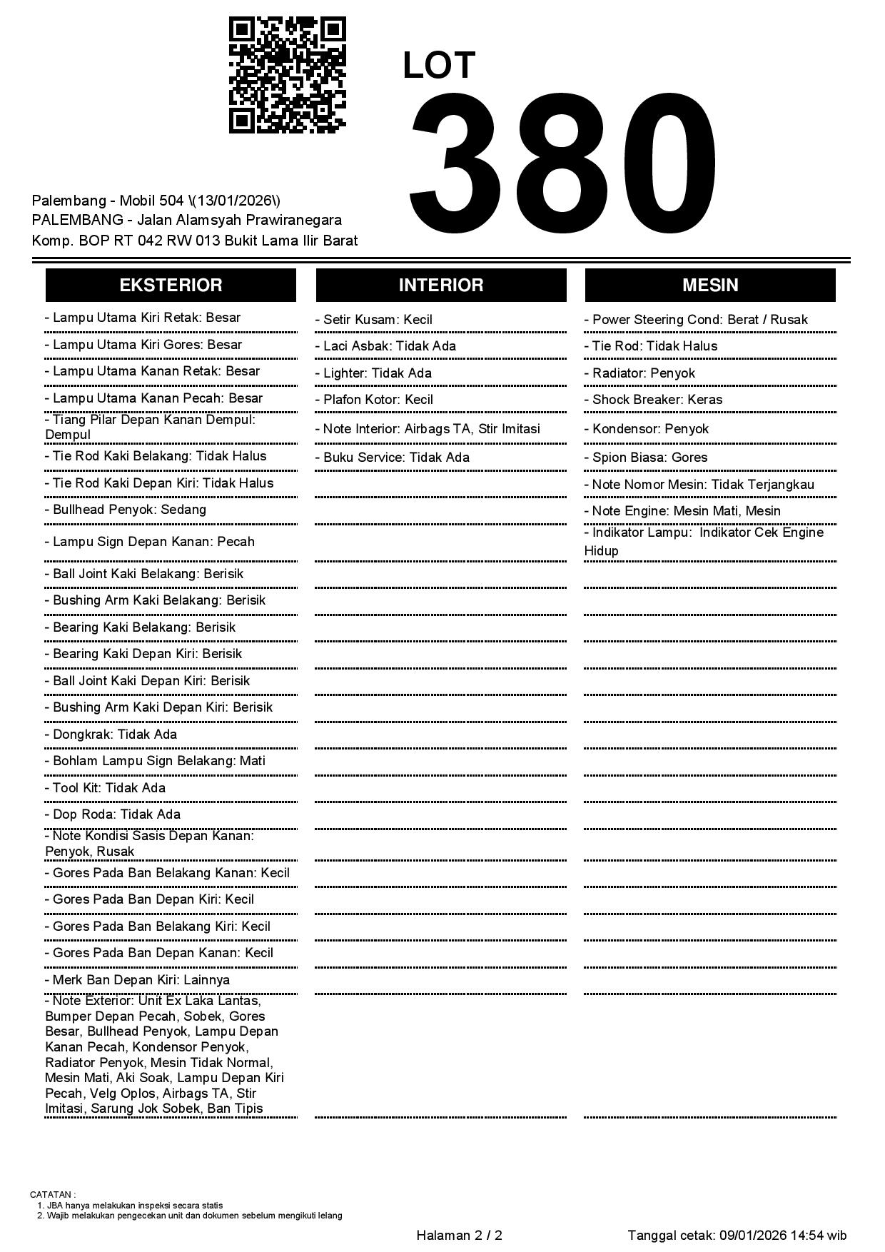 2. Peserta lelang wajib cek unit & dokumen