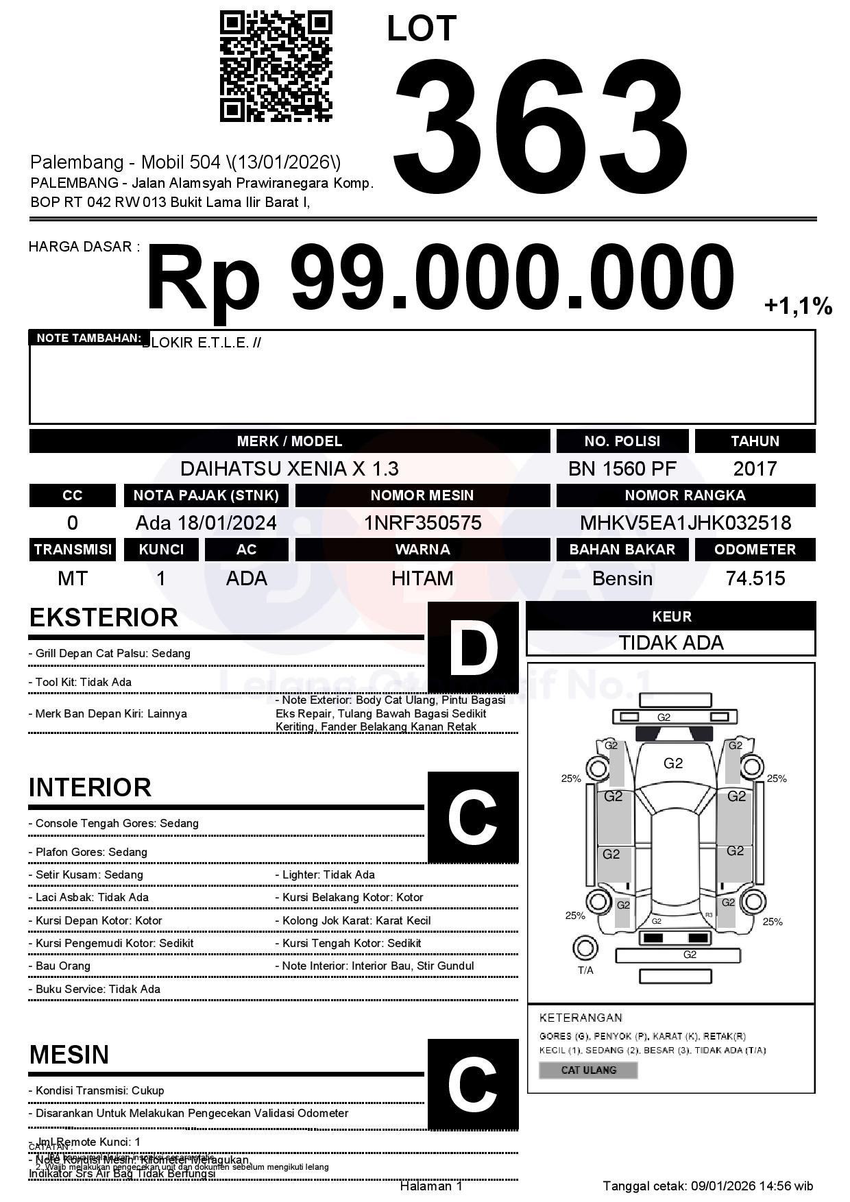 Tanggal Lelang: 13/01/2026 | 13:00 WIB