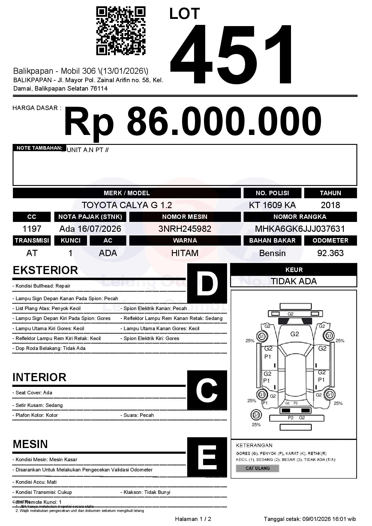 Tanggal Lelang: 13/01/2026 | 13:00 WITA