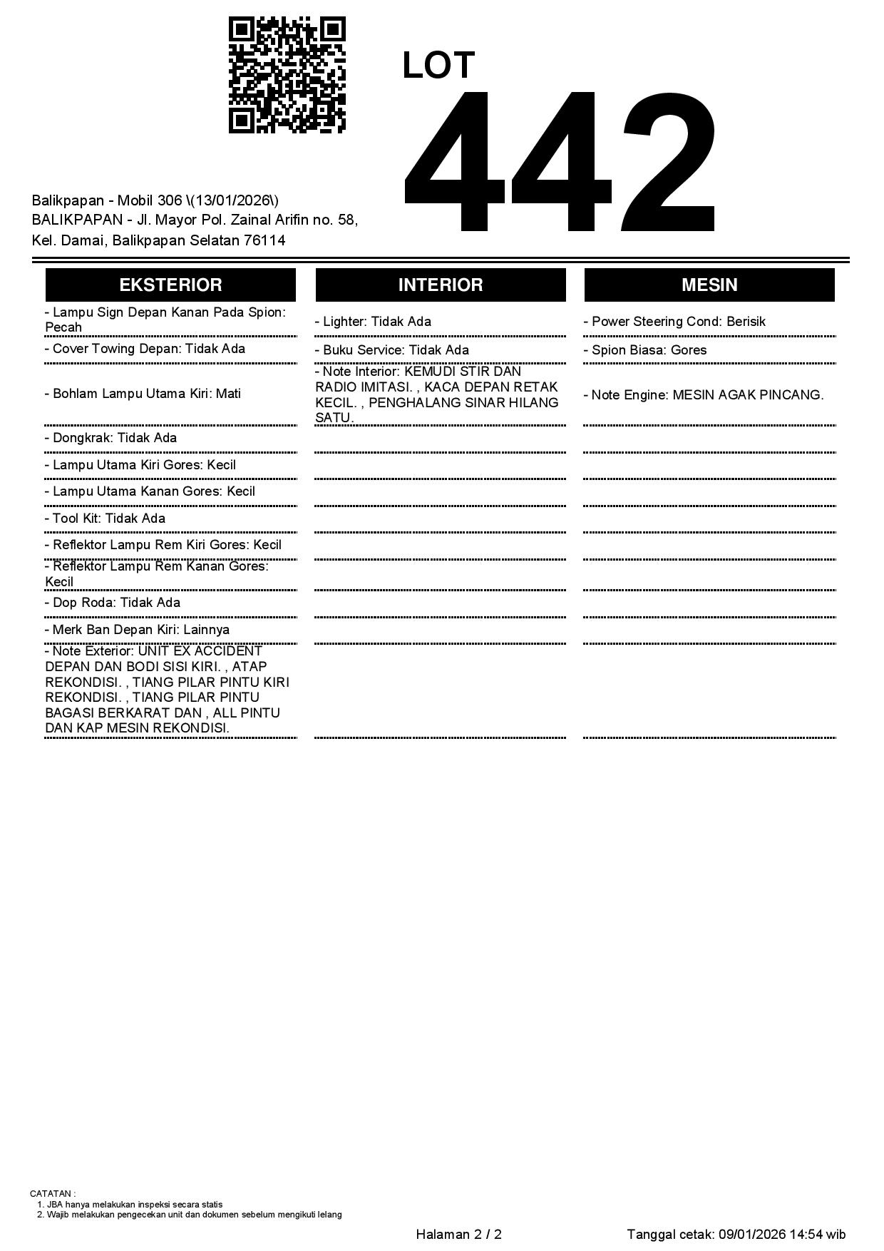 Tanggal Lelang: 13/01/2026 | 13:00 WITA