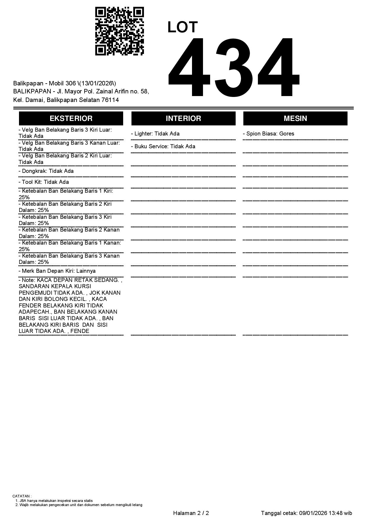 Tanggal Lelang: 13/01/2026 | 13:00 WITA