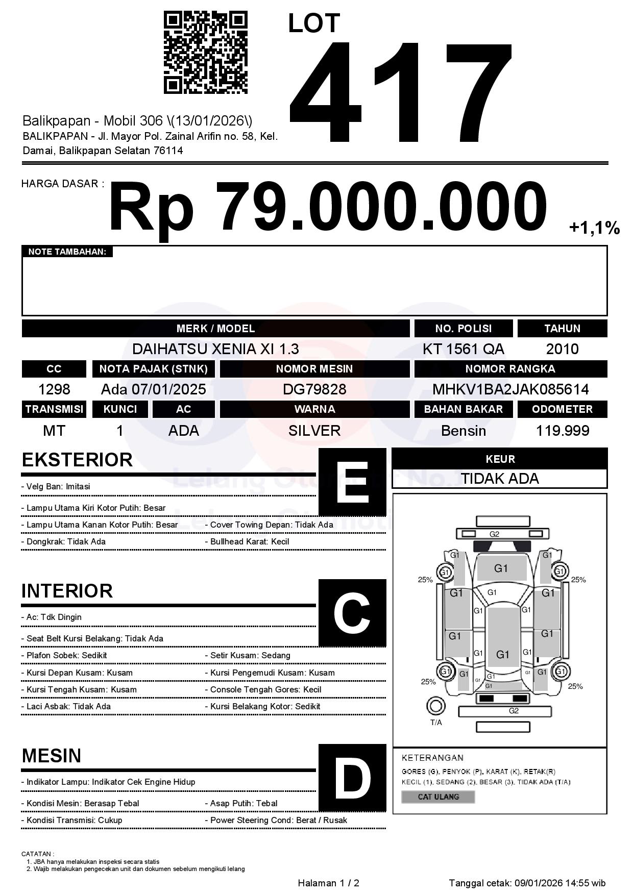 Tanggal Lelang: 13/01/2026 | 13:00 WITA