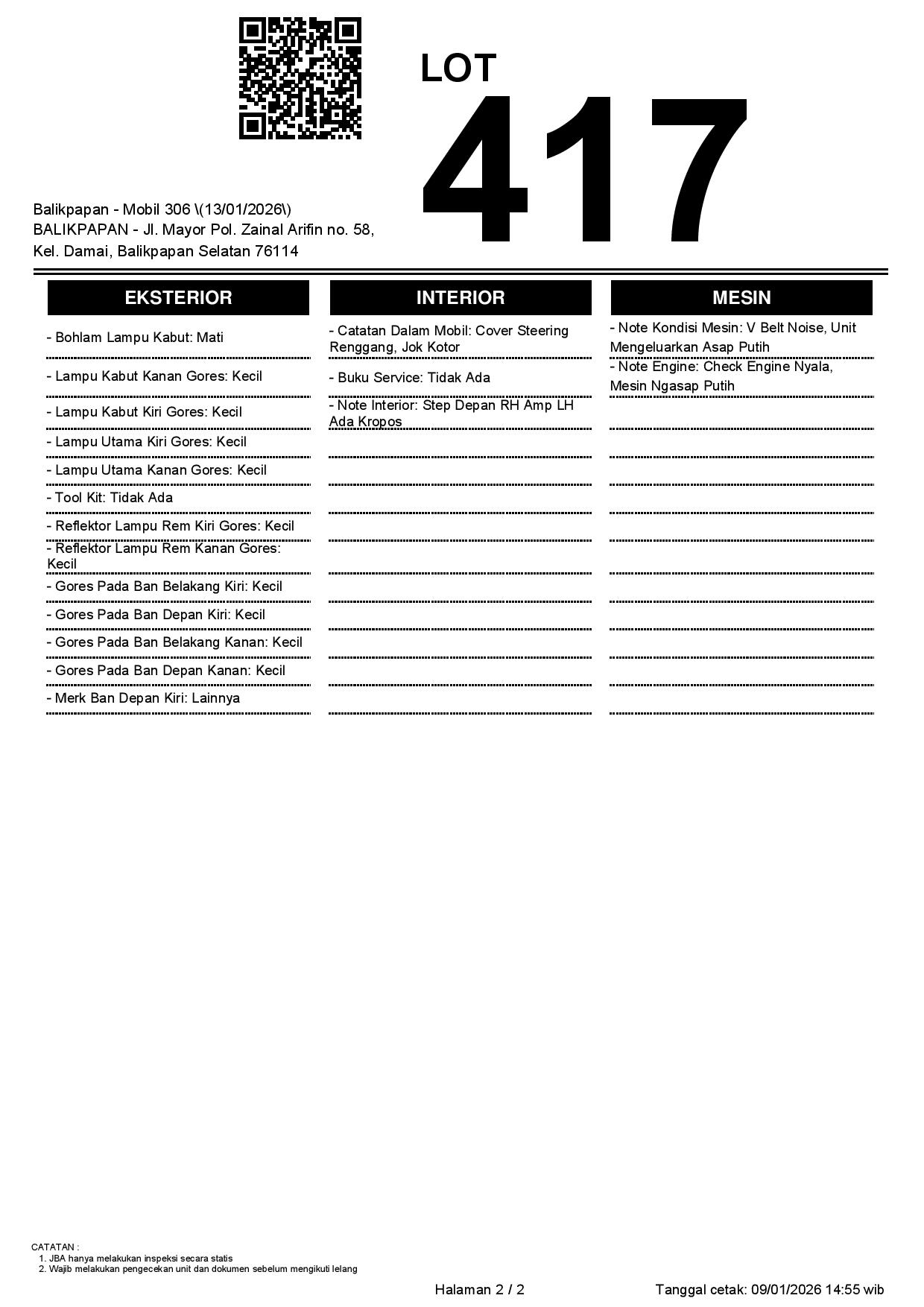 2. Peserta lelang wajib cek unit & dokumen