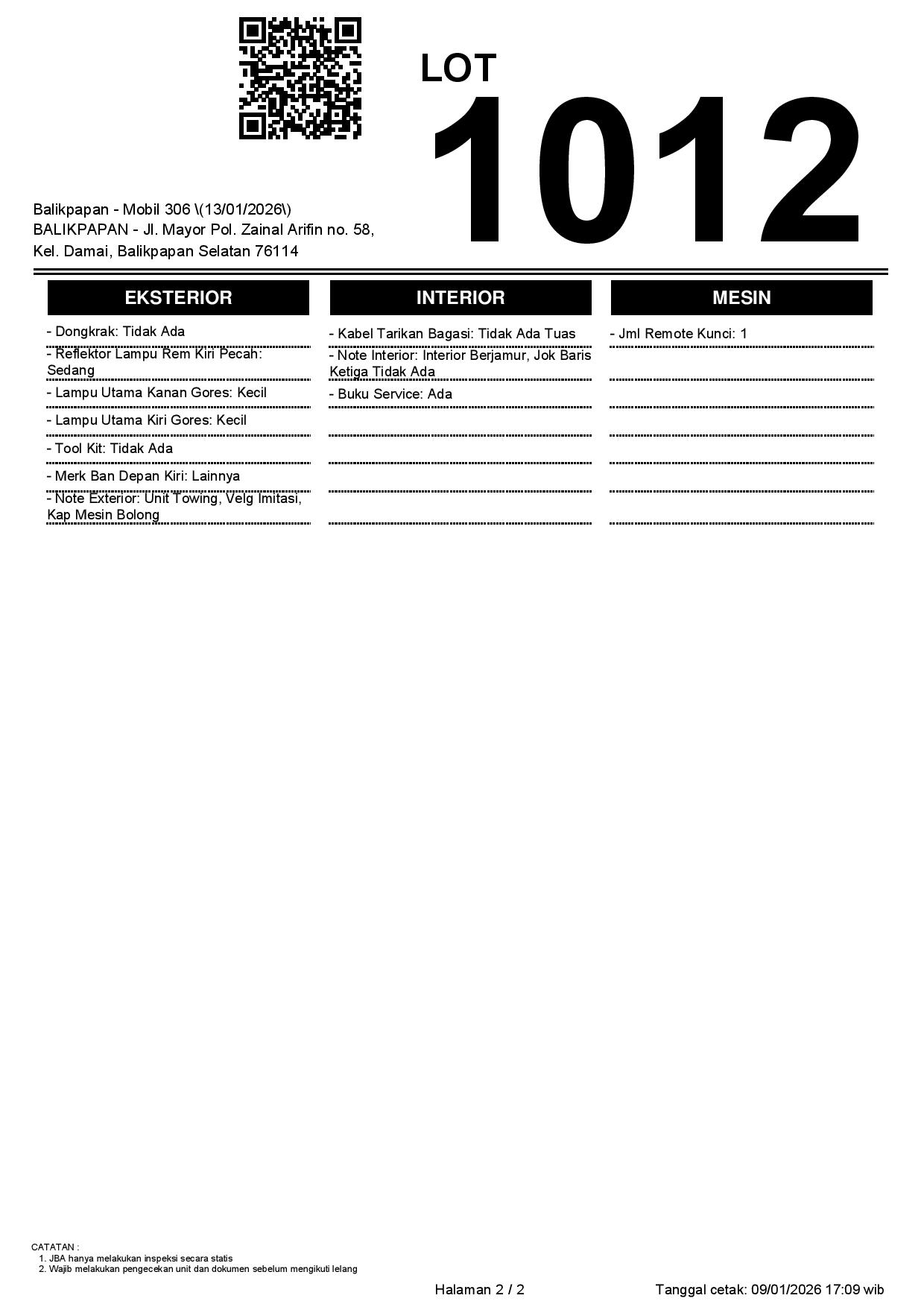 Tanggal Lelang: 13/01/2026 | 14:00 WITA