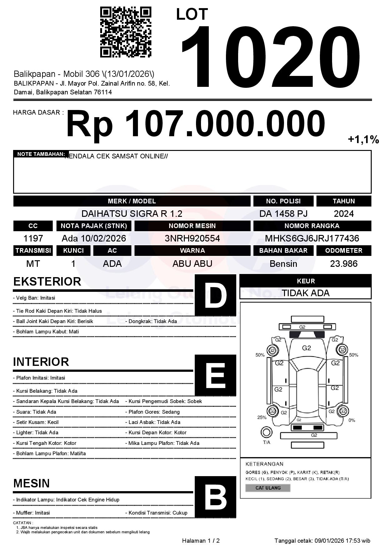 Tanggal Lelang: 13/01/2026 | 14:00 WITA