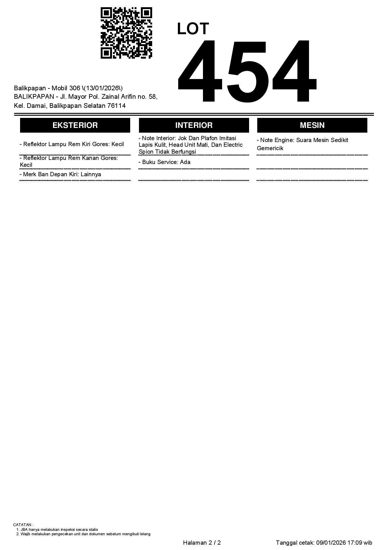 Tanggal Lelang: 13/01/2026 | 13:00 WITA