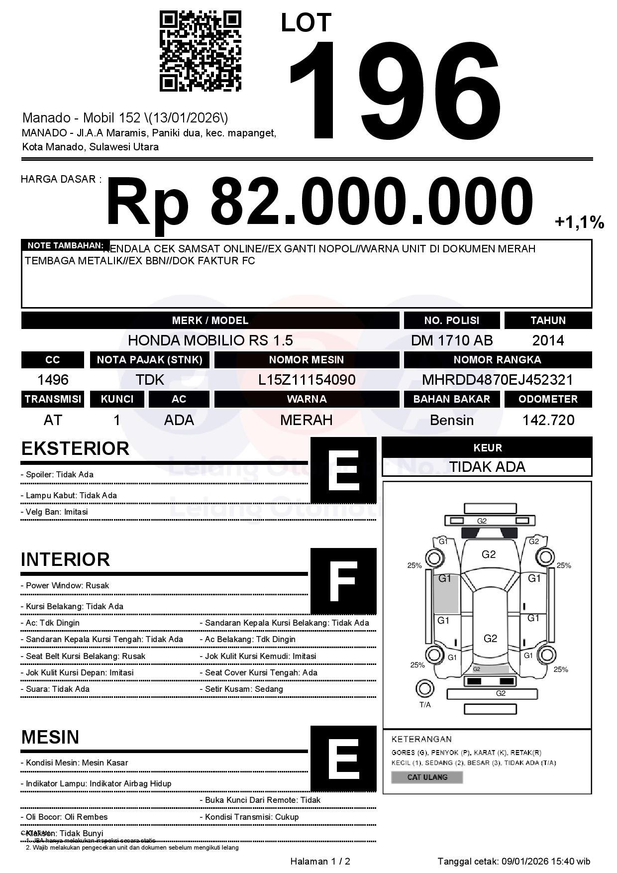 Tanggal Lelang: 13/01/2026 | 13:00 WITA