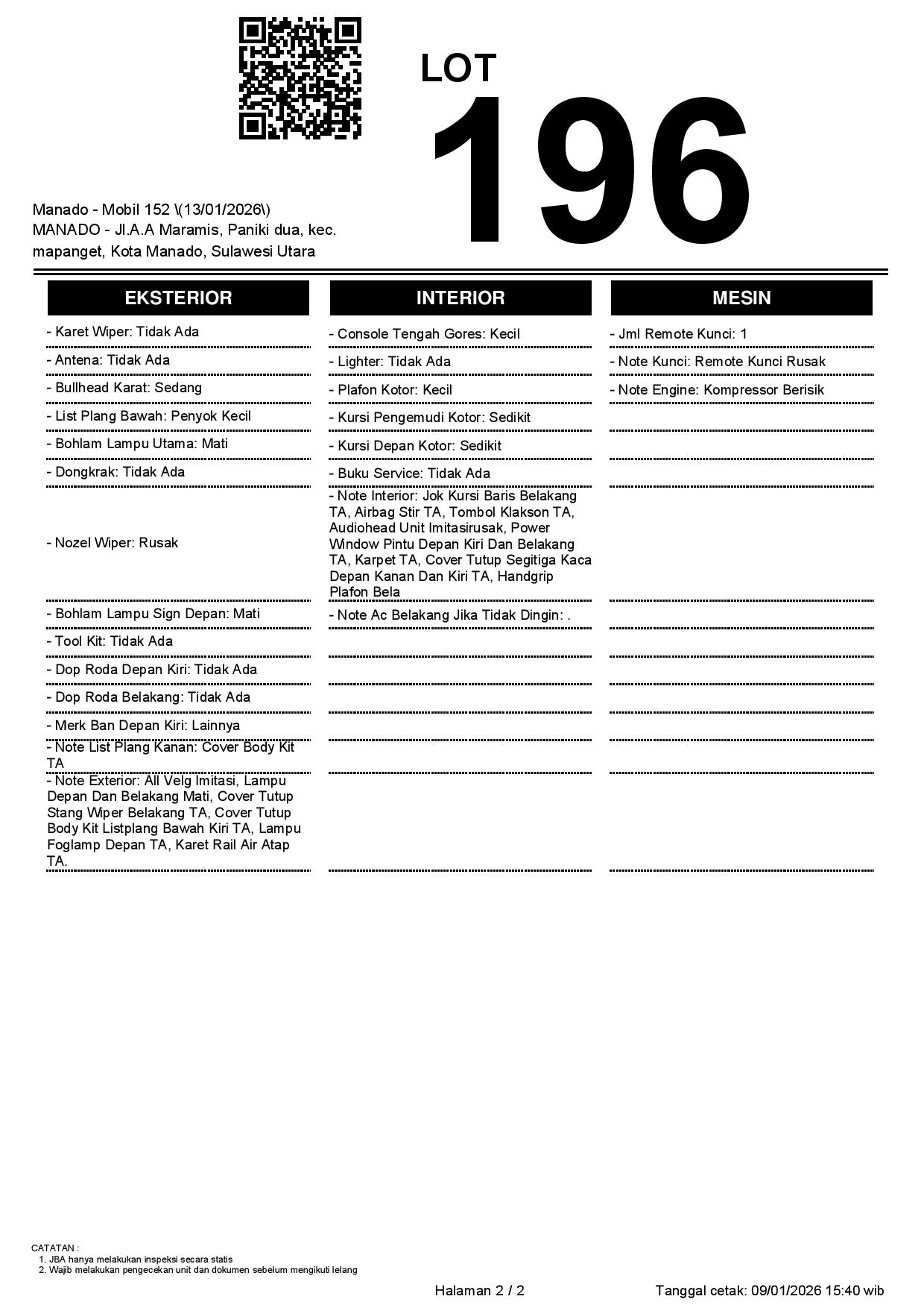2. Peserta lelang wajib cek unit & dokumen