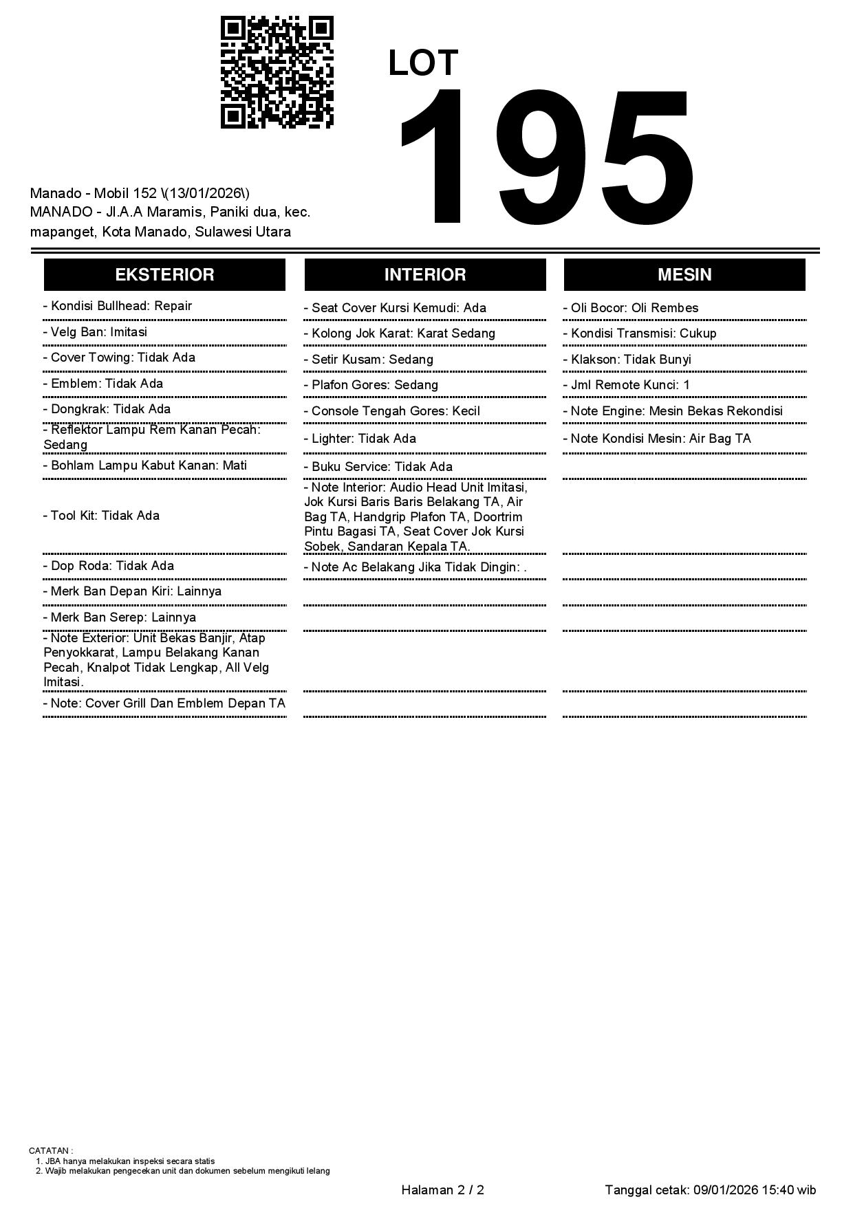 Tanggal Lelang: 13/01/2026 | 13:00 WITA