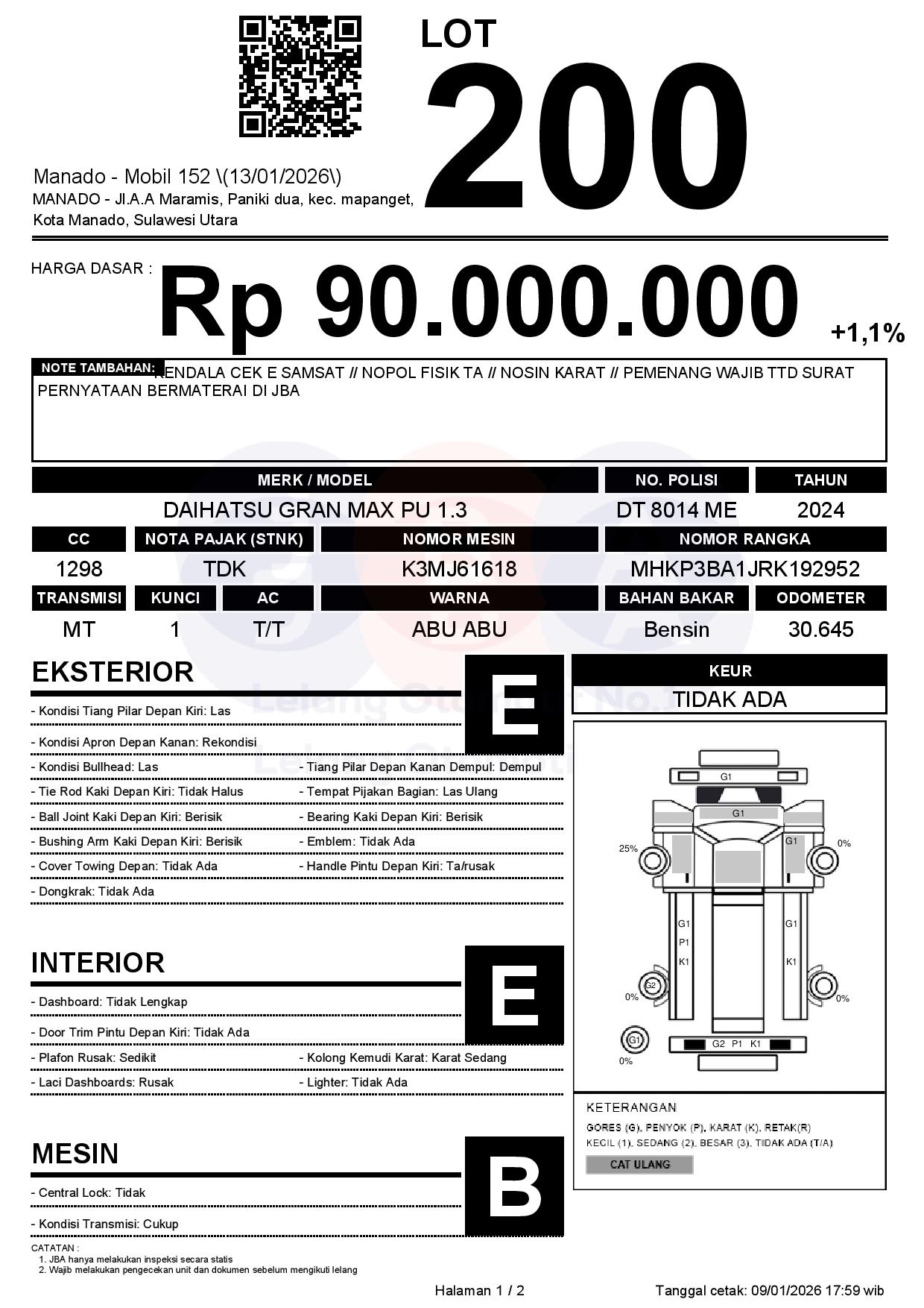 Tanggal Lelang: 13/01/2026 | 13:00 WITA