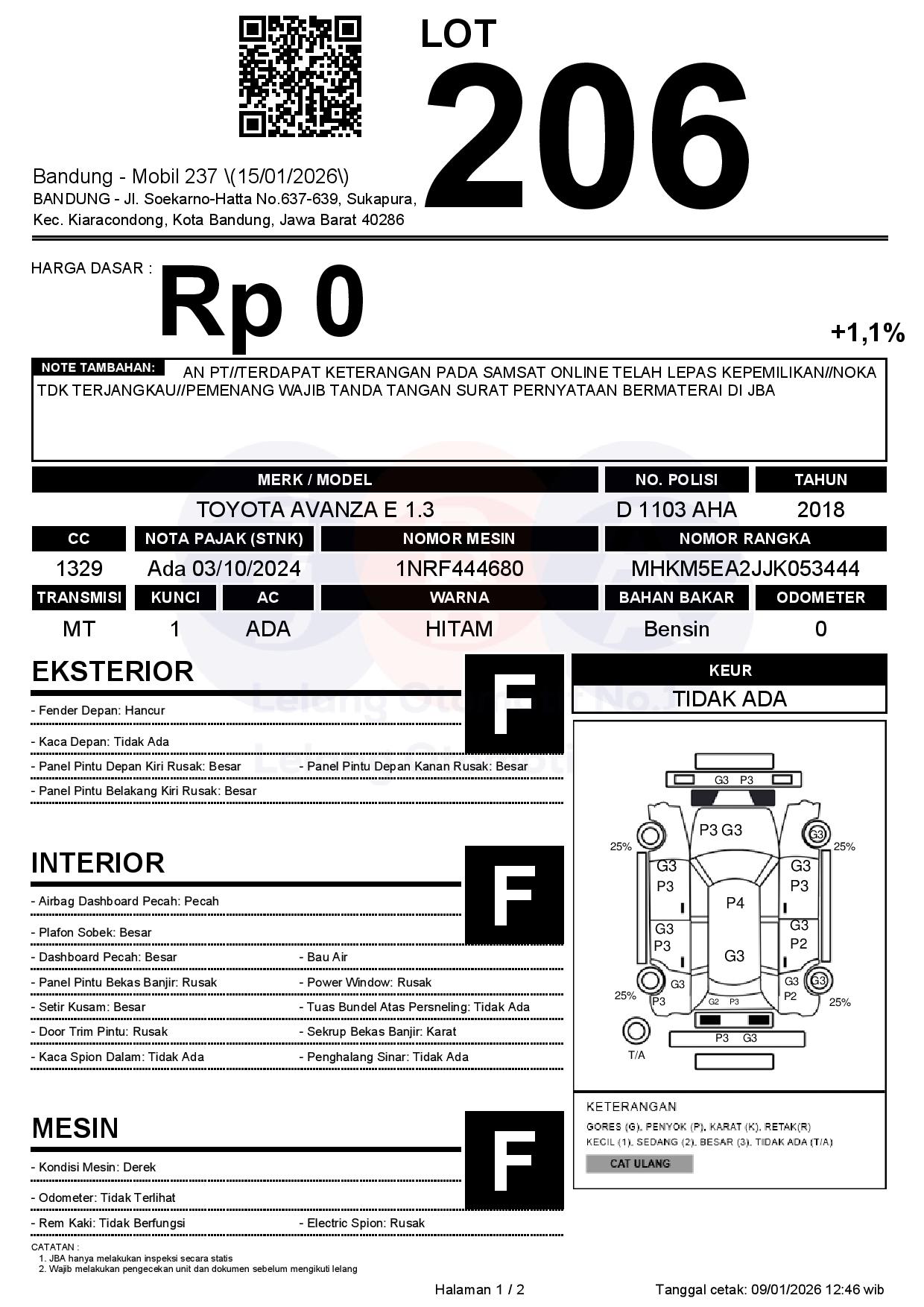AN PT//TERDAPAT KETERANGAN PADA SAMSAT ONLINE TELAH LEPAS KEPEMILIKAN//NOKA TDK TERJANGKAU//PEMENANG WAJIB TANDA TANGAN SURAT PERNYATAAN BERMATERAI DI JBA