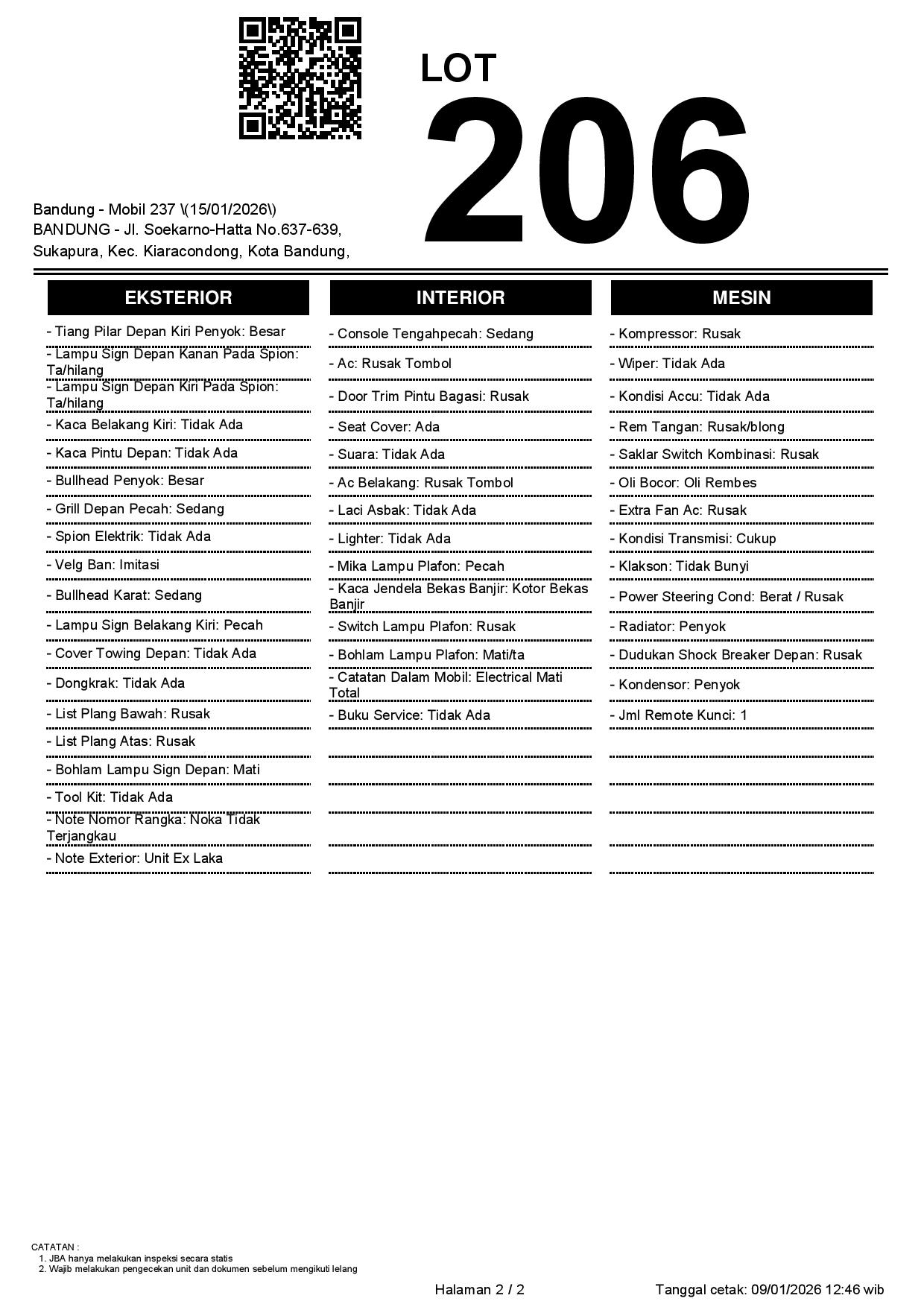 2. Peserta lelang wajib cek unit & dokumen