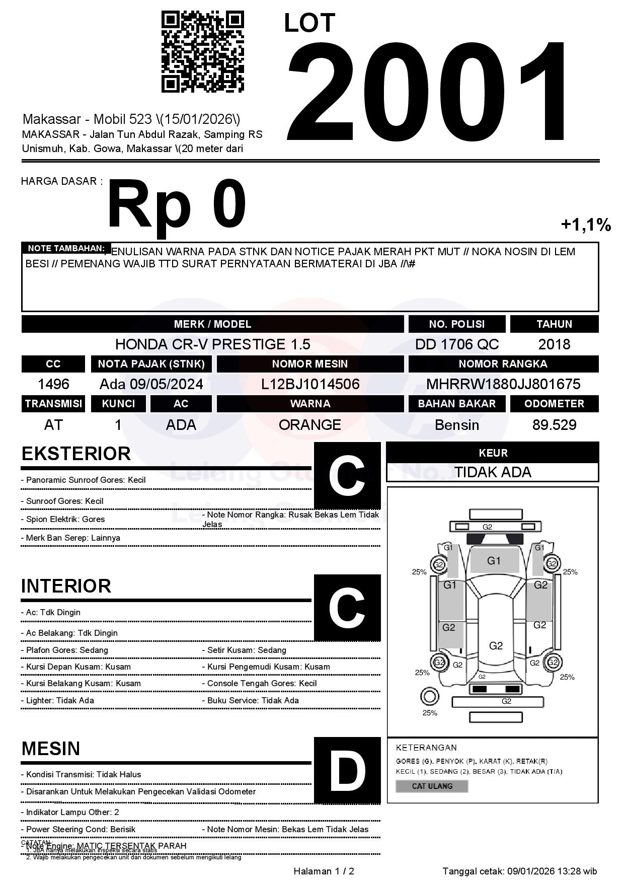 Tanggal Lelang: 15/01/2026 | 14:00 WITA