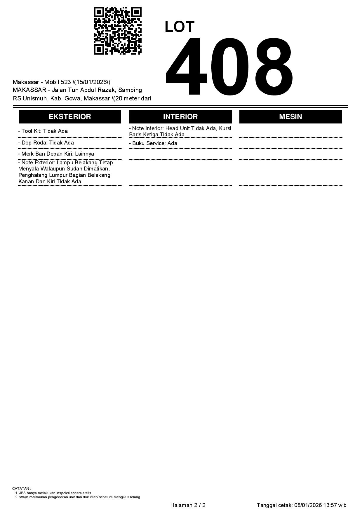 2. Peserta lelang wajib cek unit & dokumen