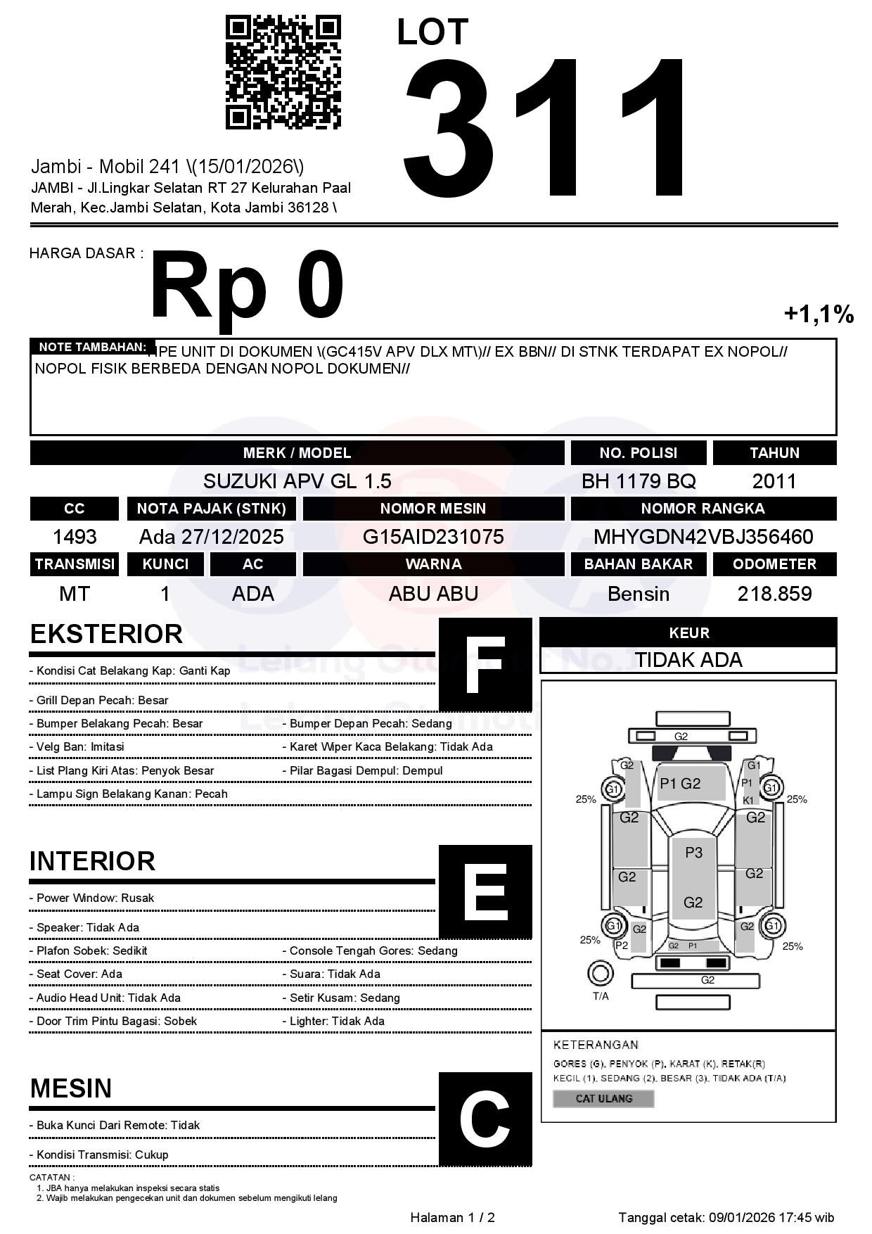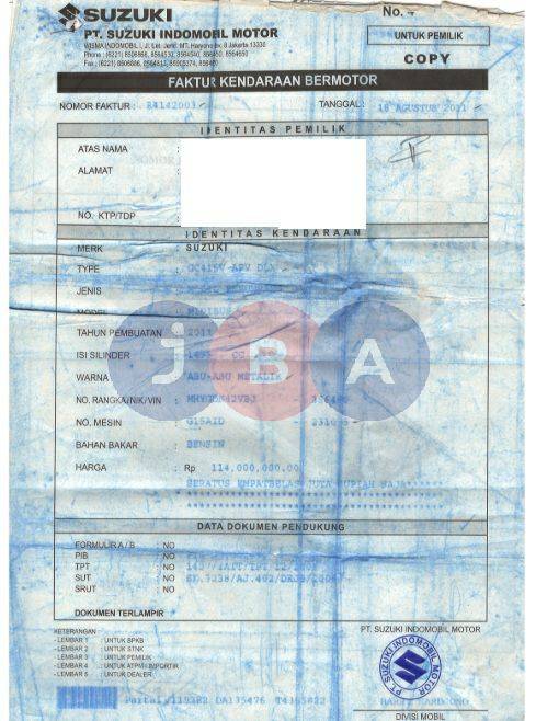 TIPE UNIT DI DOKUMEN (GC415V APV DLX MT)// EX BBN// DI STNK TERDAPAT EX NOPOL// NOPOL FISIK BERBEDA DENGAN NOPOL DOKUMEN//